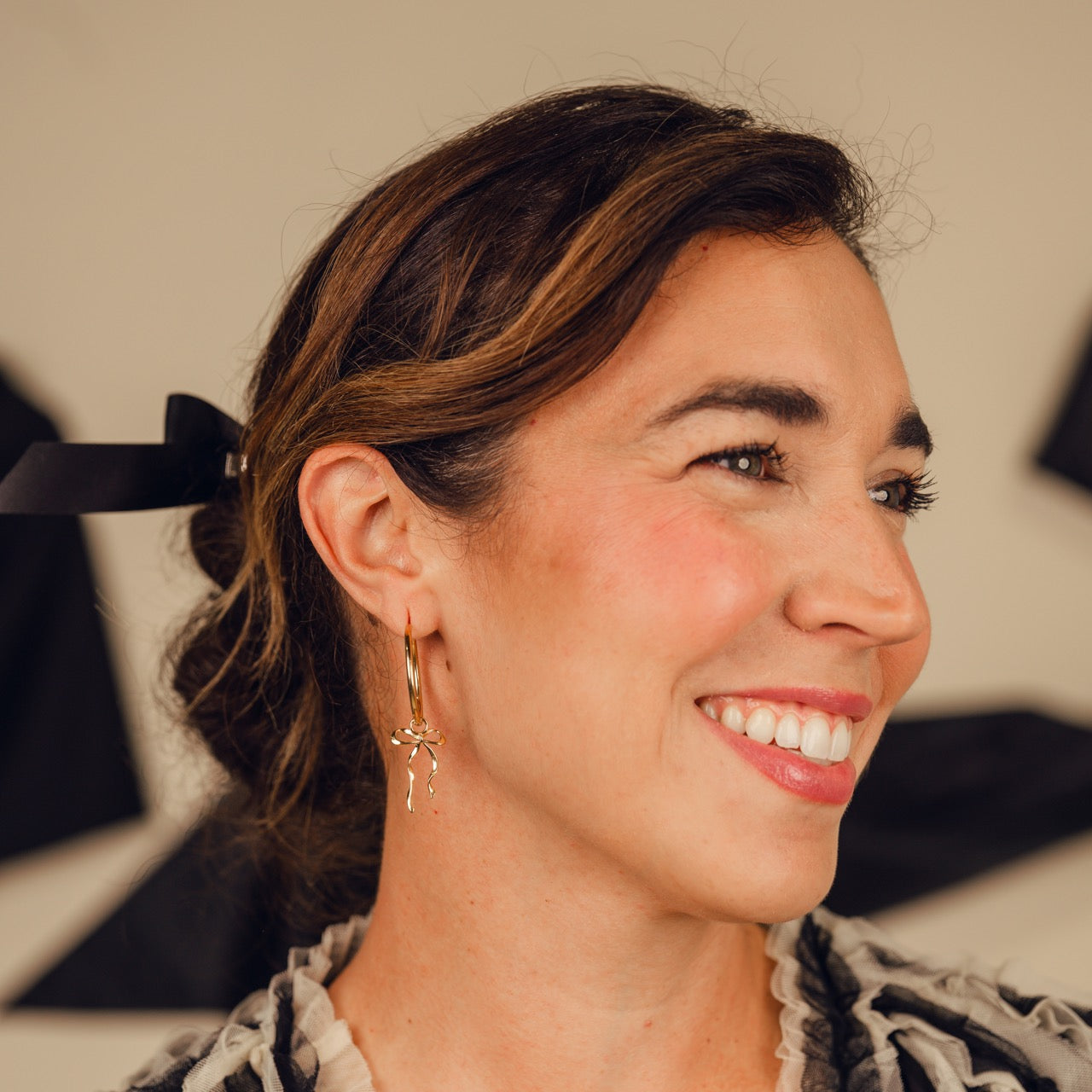 Dainty Bow Huggie Hoop Charms