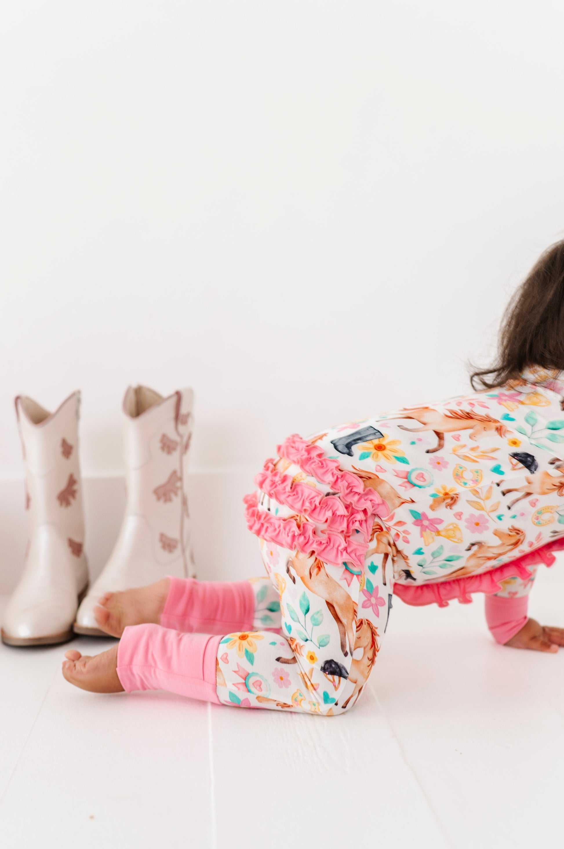 Why choose between a romper and a footie when you can have both in one adorable piece? This versatile romper converts into a footie with fold-over feet cuffs, giving you all the flexibility you need! Made from irresistibly soft bamboo viscose with a hint of spandex, this piece combines cuteness and comfort, and our 2-way zipper makes diaper changes effortless.