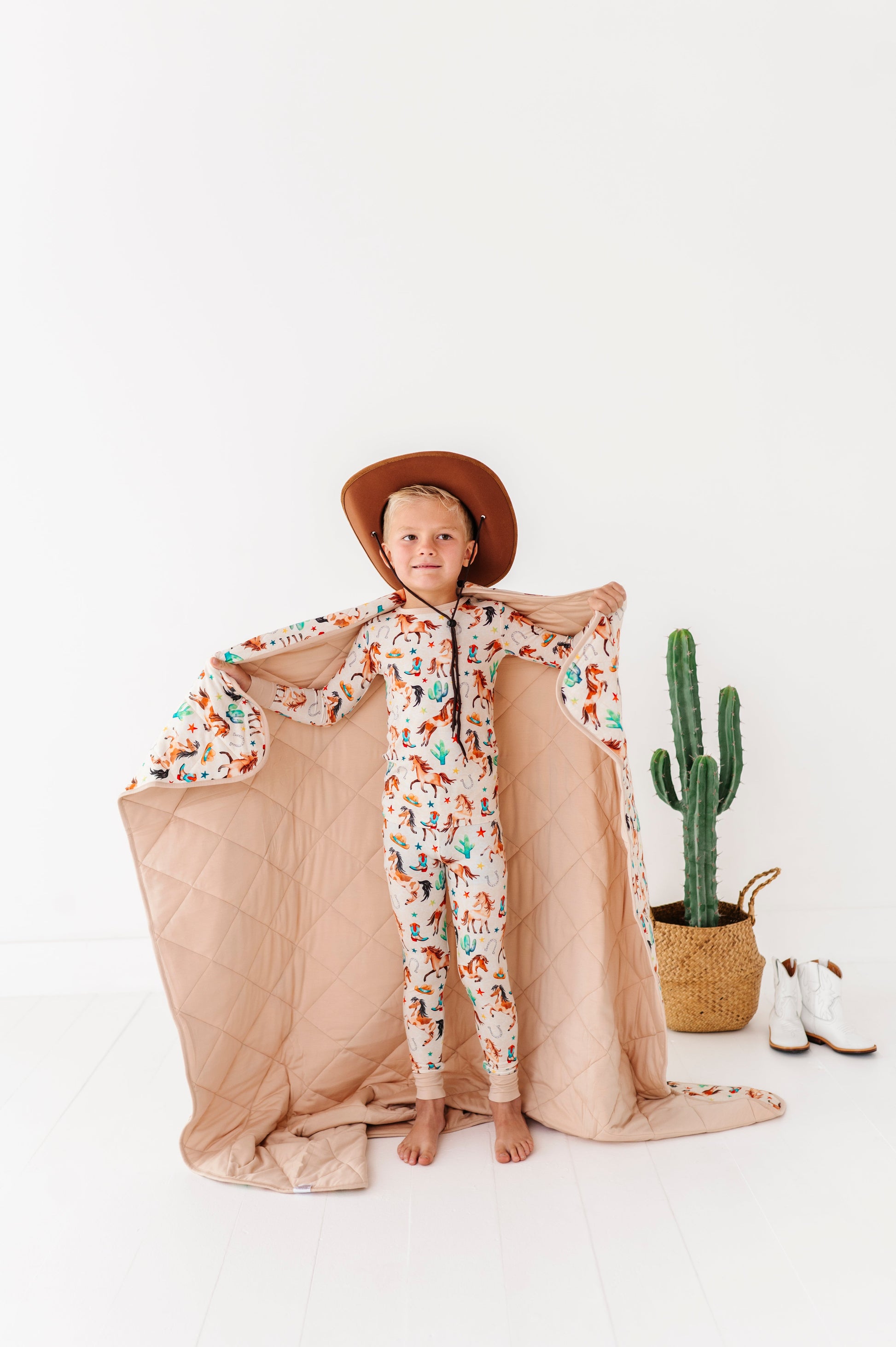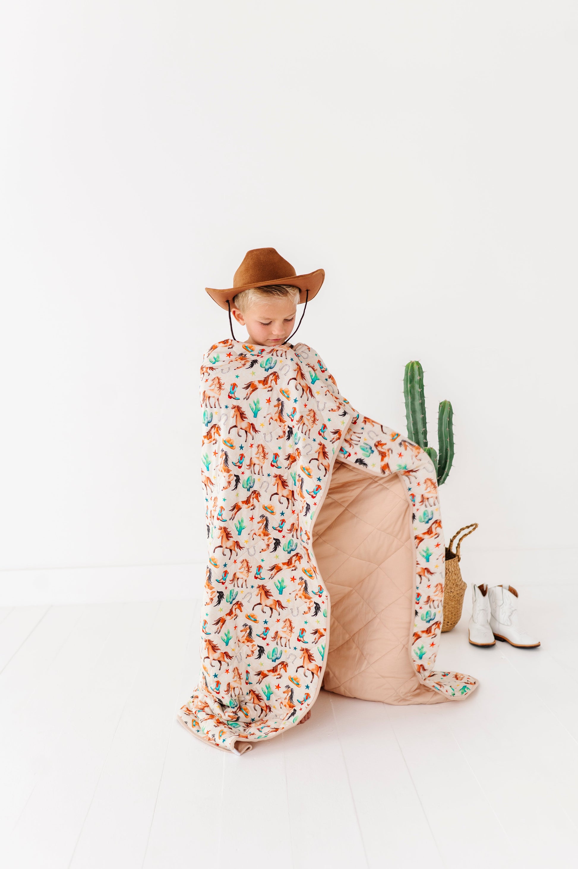 Cozy up in western-inspired style with our Denver Quilt. Featuring a patchwork of cowboys, boots, horses, and desert details, this quilt brings all the rodeo charm while still being soft, breathable, and oh-so-comfortable. Made from our signature bamboo blend, itโs lightweight yet warm. Perfect for curling up at home, layering on a bed, or packing for adventures.