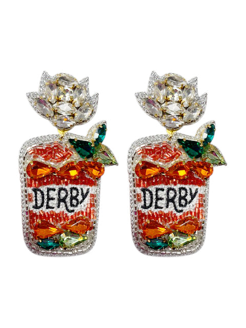 Our Kentucky Derby Collection, is full of bright, colorful and festive earrings to celebrate all things Derby. These bourbon earrings are hand beaded with seed bead and rhinestone detail. One of the signature drinks of the Derby, you are sure to celebrate a win!