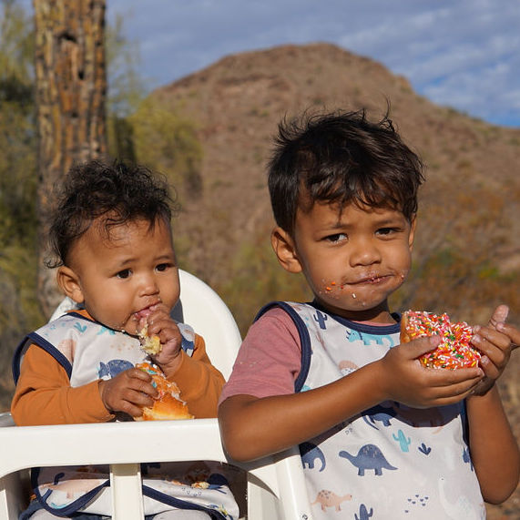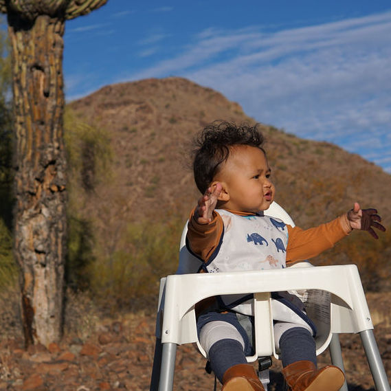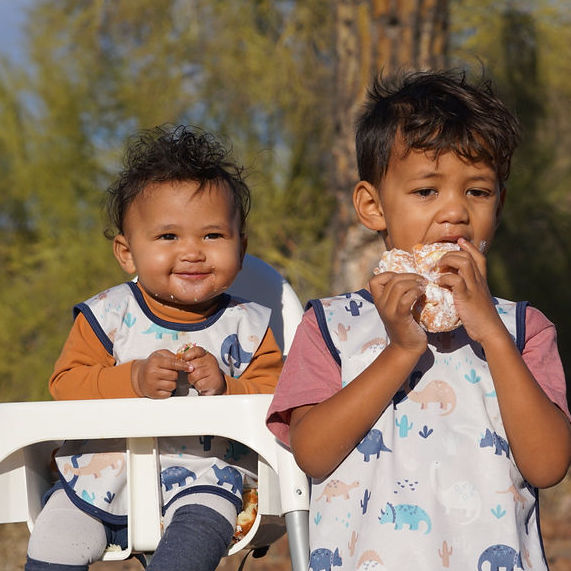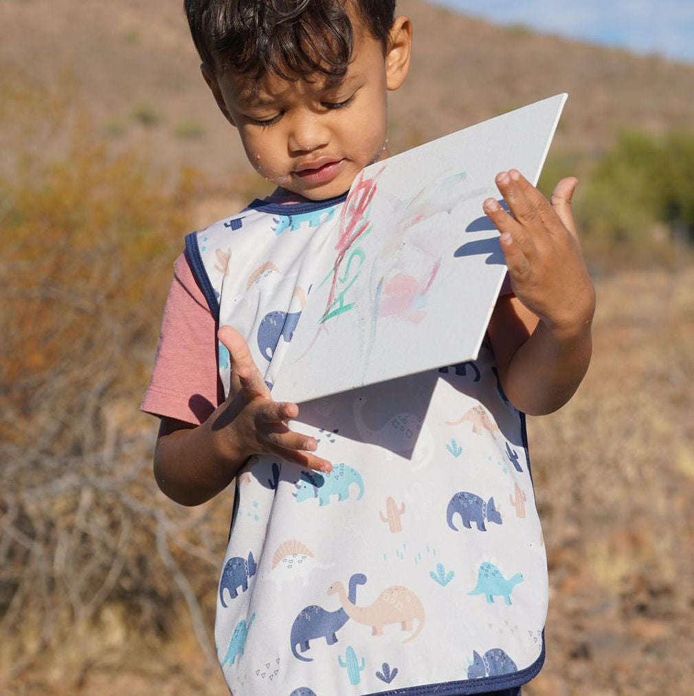 This best-selling “Bapron”, also known as a bib-apron hybrid, full-coverage bib, smock, or apron, is designed for comfort and safety. Because of their comfortable, secure-fitting horizontal ties and their full-coverage design, Baprons are the perfect companion for mealtime, art, and sensory play!