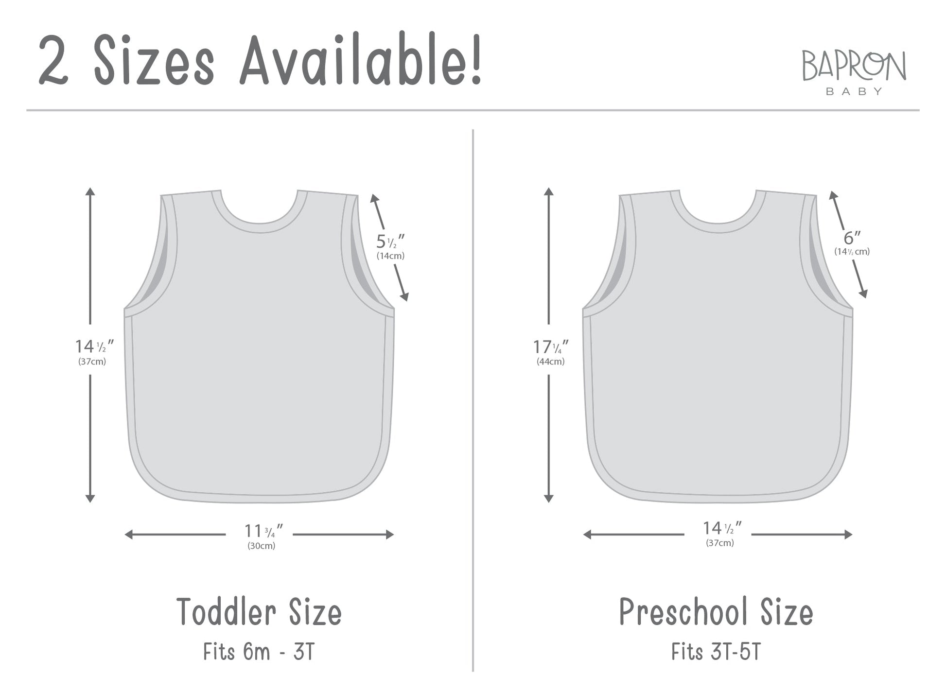 This best-selling “Bapron”, also known as a bib-apron hybrid, full-coverage bib, smock, or apron, is designed for comfort and safety. Because of their comfortable, secure-fitting horizontal ties and their full-coverage design, Baprons are the perfect companion for mealtime, art, and sensory play!