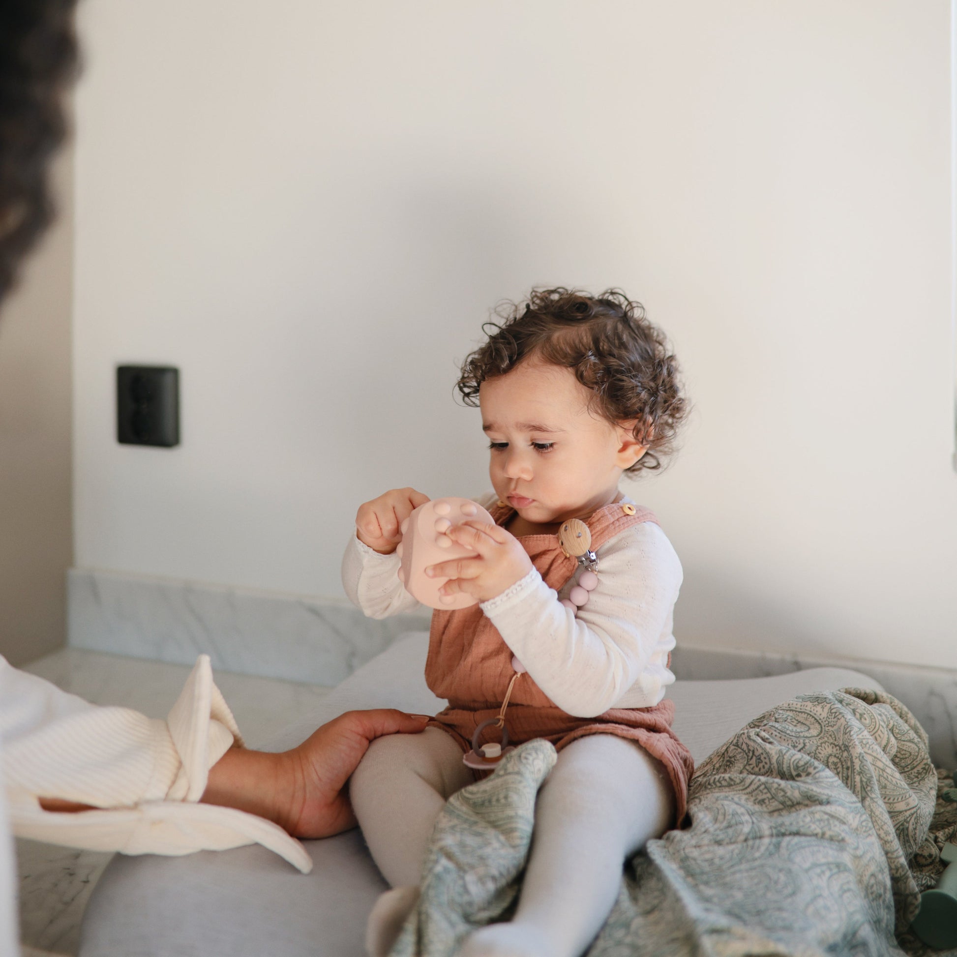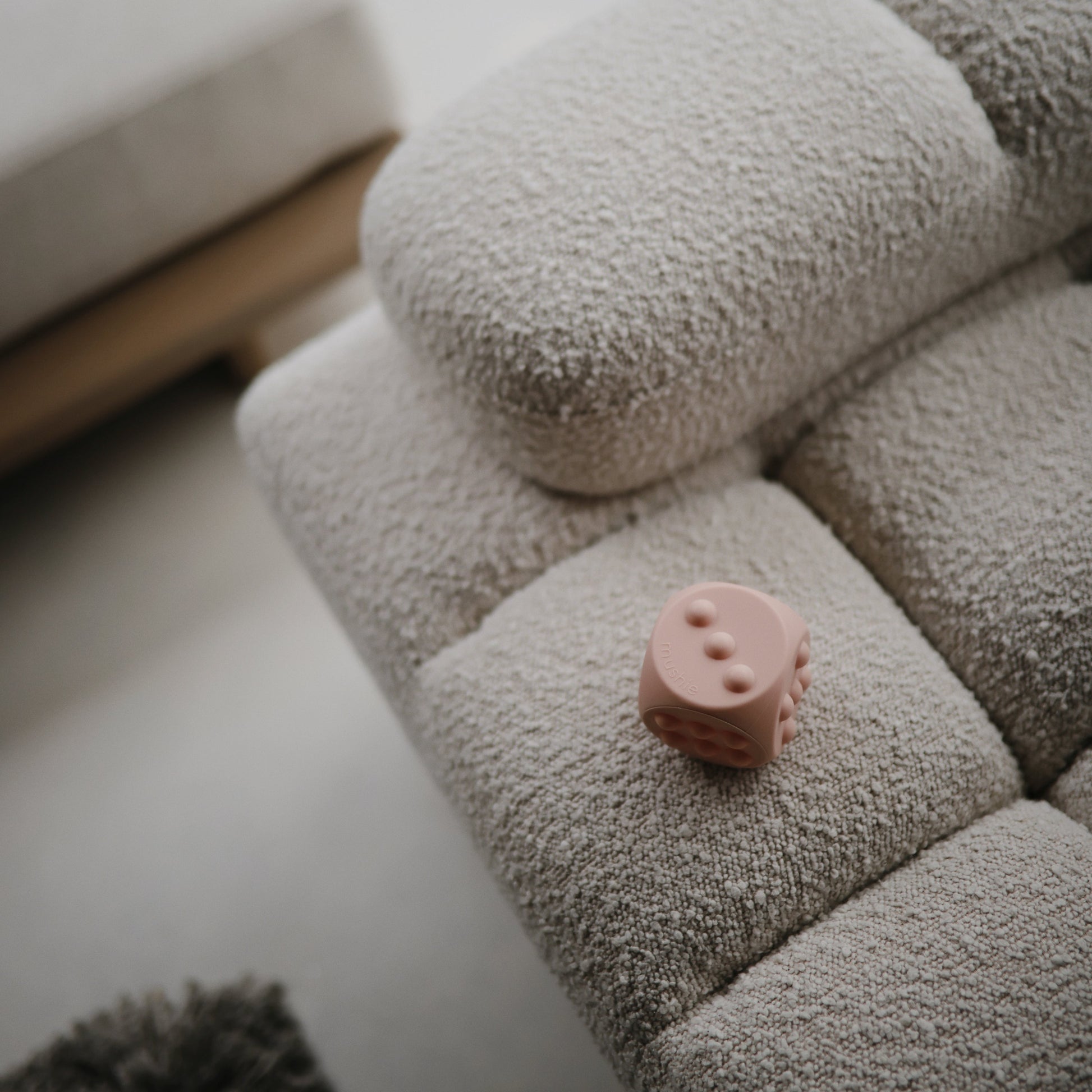 Combine learning and play with the mushie Dice Press Toy. Made with 100% food grade silicone, the pair of dice features poppable dots on each face, encouraging fine motor skill development while also providing a tool for teaching counting and simple arithmetic. A sensory toy and STEM toy all in one, this set of two was developed to keep little hands and minds busy.
