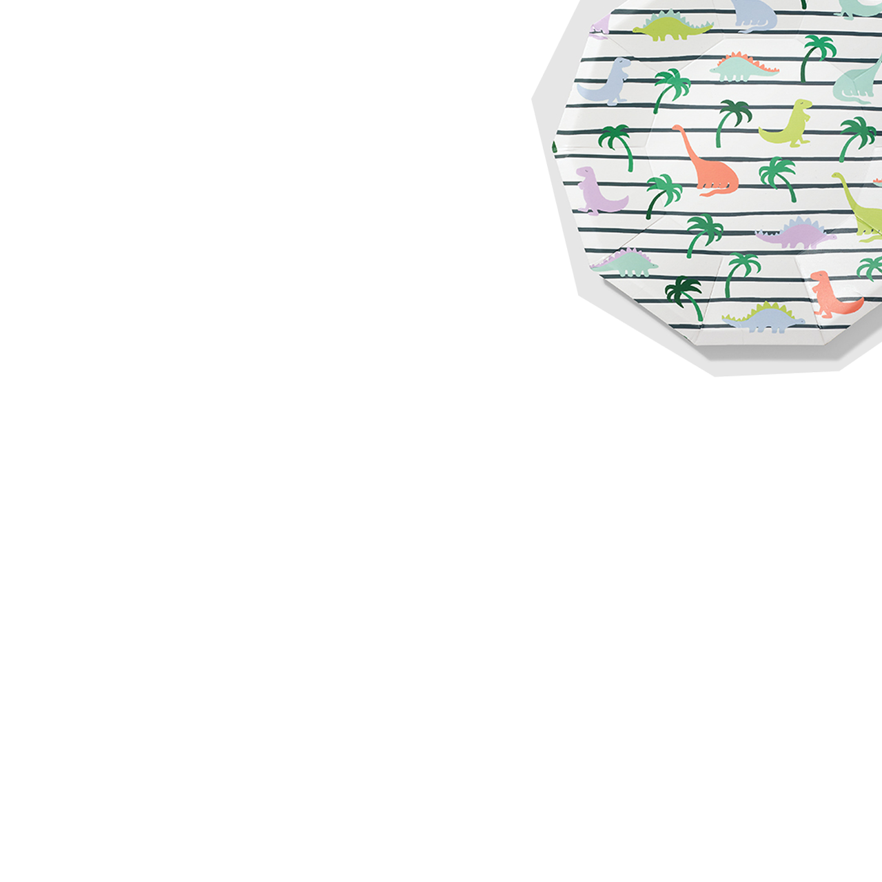 If there's one thing dinosaurs knew how to do, it was eat. And your guests will want to do the same with these small plates. Decorated with kids' favorite prehistoric creatures, the geometric plates are the ideal size for desserts and snacks.