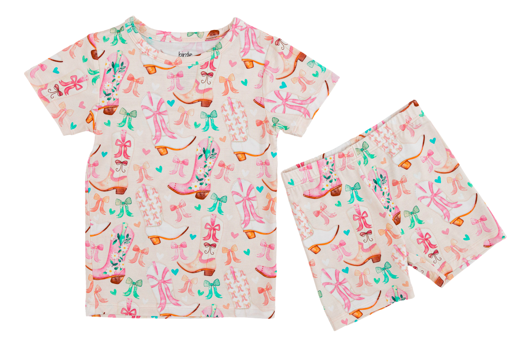 Saddle up for sweet dreams in this darling western pajama set! Adorned with a whimsical print of colorful cowgirl boots, pretty bows, and playful hearts, this two-piece set is perfect for little ones who love a touch of western charm. Crafted from our signature bamboo viscose blend, it’s buttery soft, breathable, and made to stretch so your kiddo stays comfy all night (and all day). Perfect for bedtime, playtime, or cozy snuggles at home. 💖