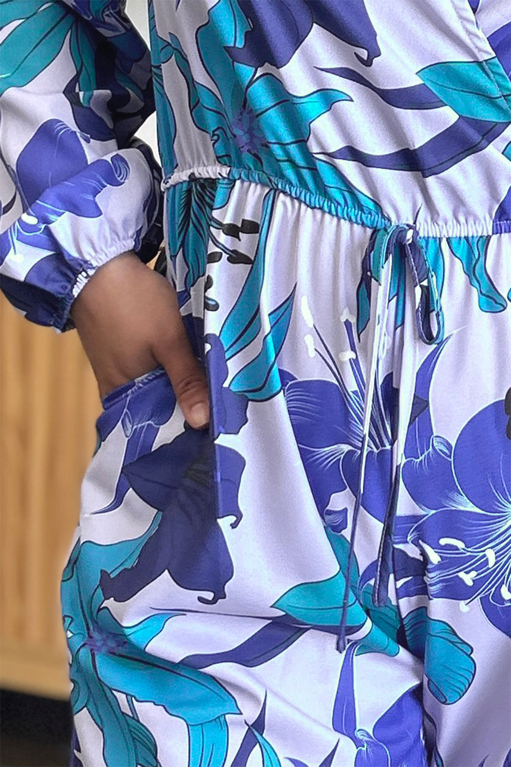Double Take Full Size Floral Long Sleeve Romper with Pockets