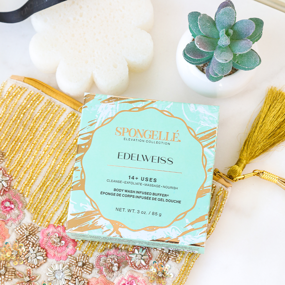 Discover nature’s healing minerals and the vitalizing aroma of Spongellé’s® Elevation Collection of Body Wash Infused Buffers® in Edelweiss. This multi-use buffer elevates any shower routine with the scent of melon, edelweiss, and soft woods.