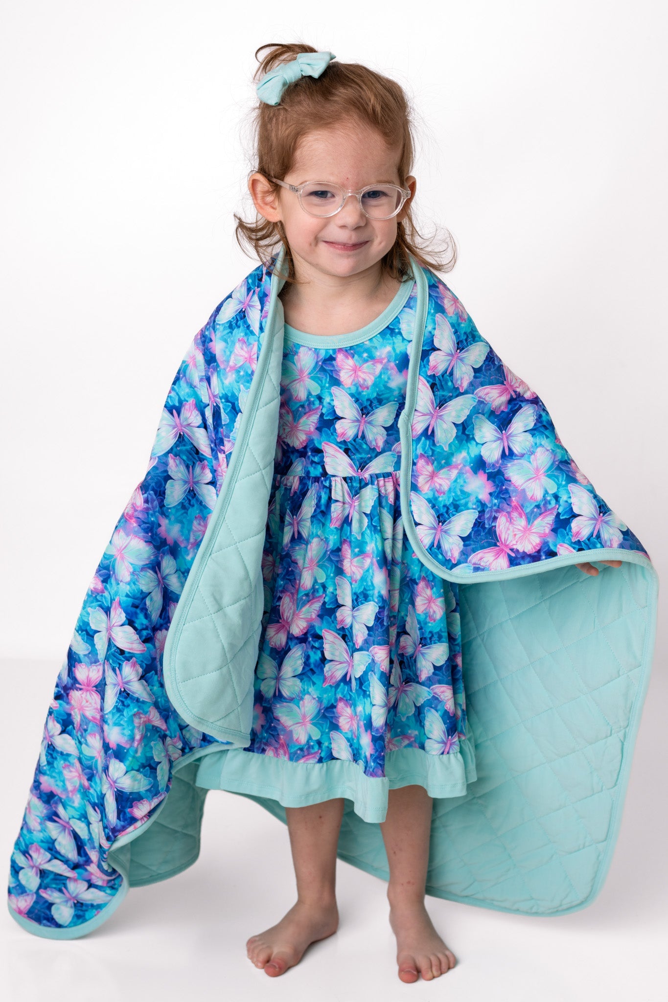 Electric Butterflies | Mini Quilted Bamboo Baby Blanket