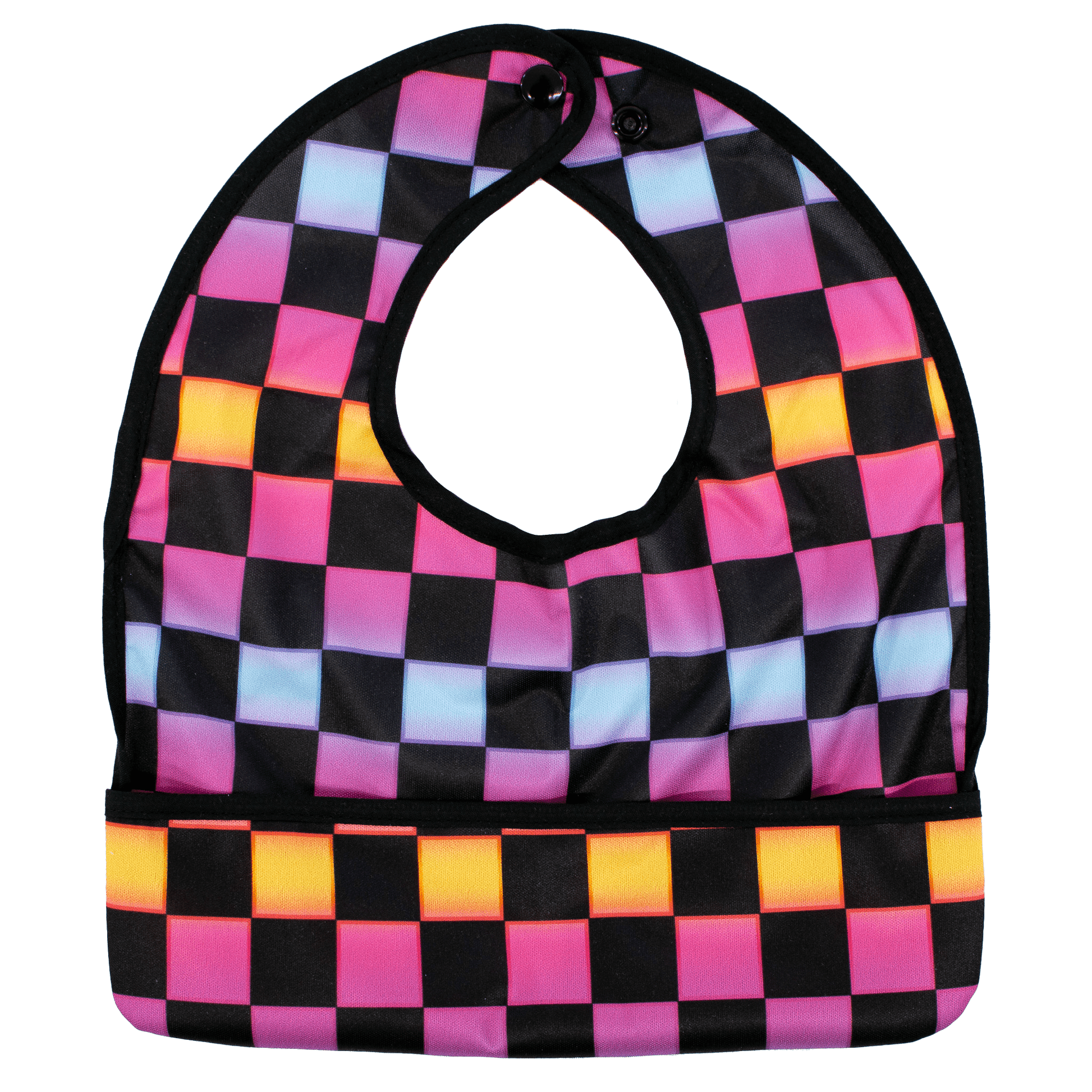 These bibs have a pocket to catch food, and drool! Each bib can be flipped back to be used without the pocket. These are machine washable, and made with the same components as a cloth diaper! PUL is water resistant, and easy to clean.
