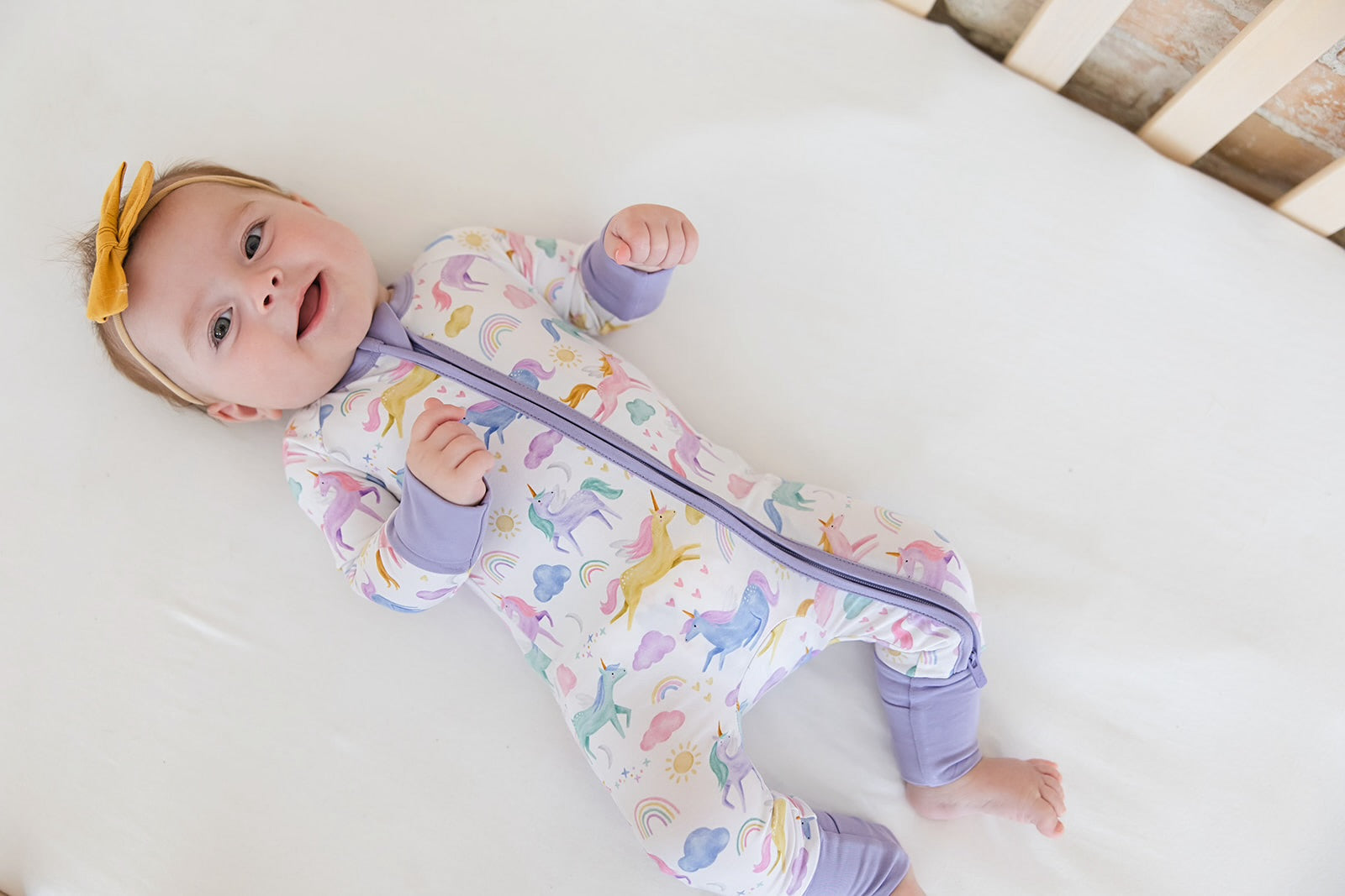 Our zippies are designed for ultimate comfort and practicality. Crafted from hypoallergenic, ultra-soft bamboo, they’re not only stretchy and breathable but also promote thermoregulation to keep your child comfortable in any season. Designed to grow with your little one, they feature magical stretch that ensures a comfortable fit while lasting three times longer than standard sleepwear.