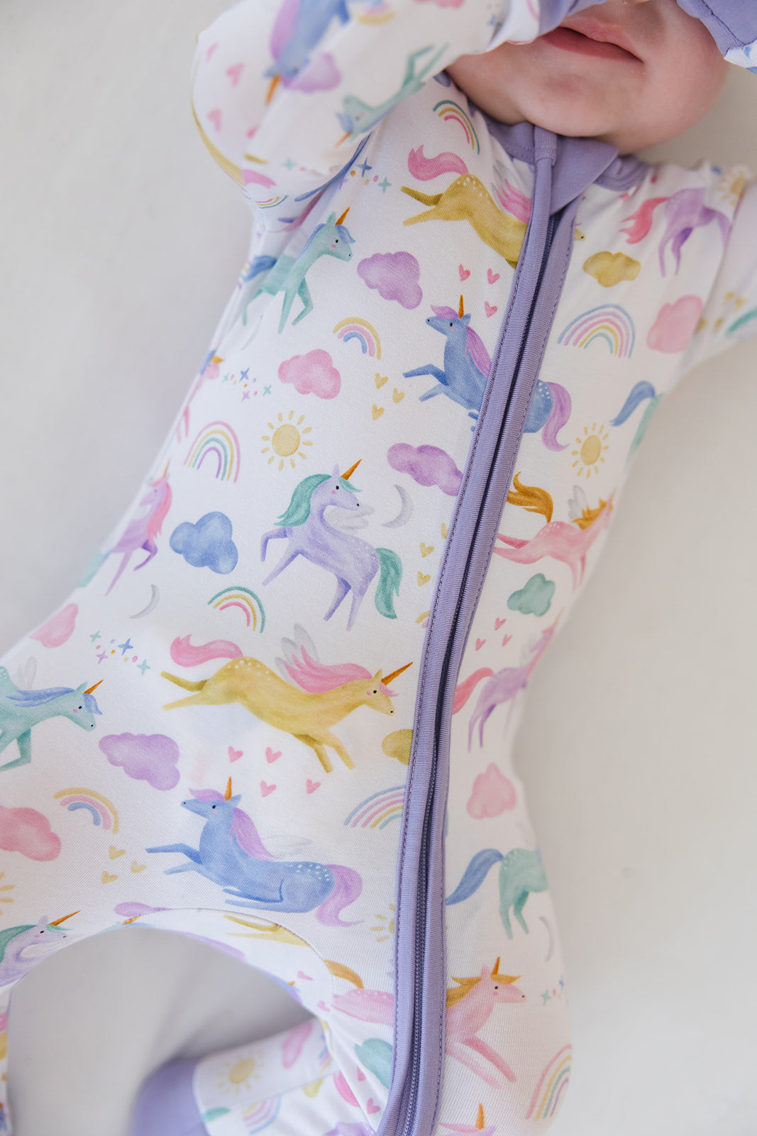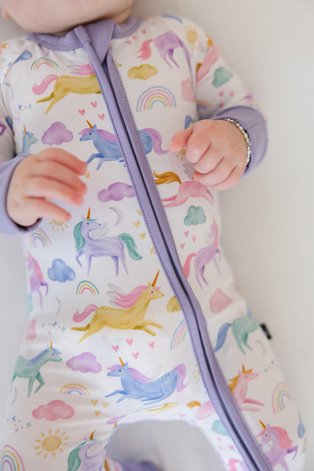 With fold-over wrist and ankle cuffs for added comfort and a double zipper for effortless diaper changes, our zippies are a game-changer for busy parents. The tagless design guarantees irritation-free wear, making them ideal for all-day lounging and play.
