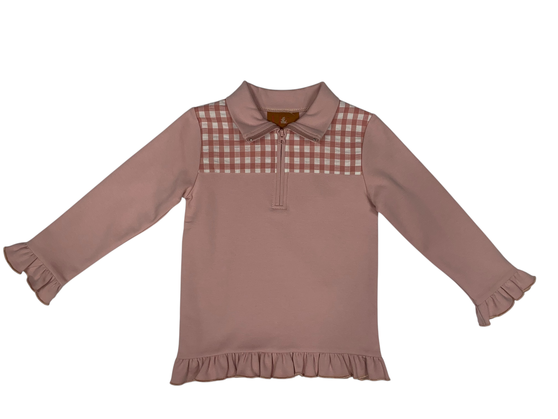 Ellie 1/4 Zip Pullover – Rose Gingham Girls Top
