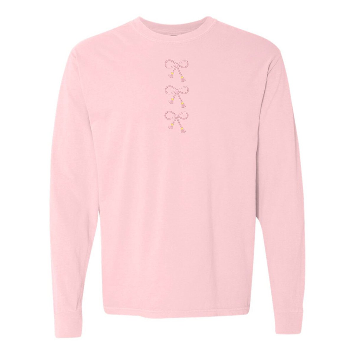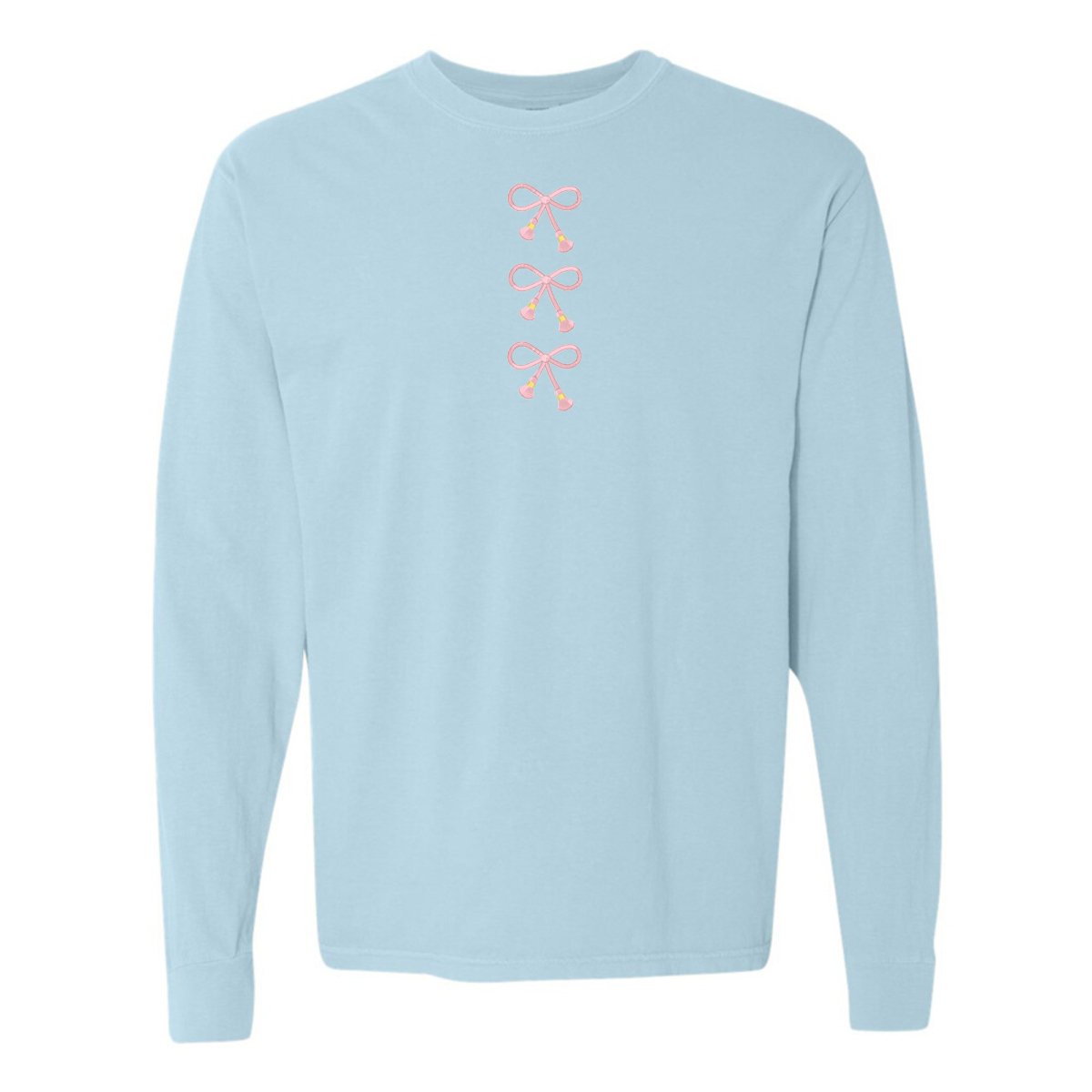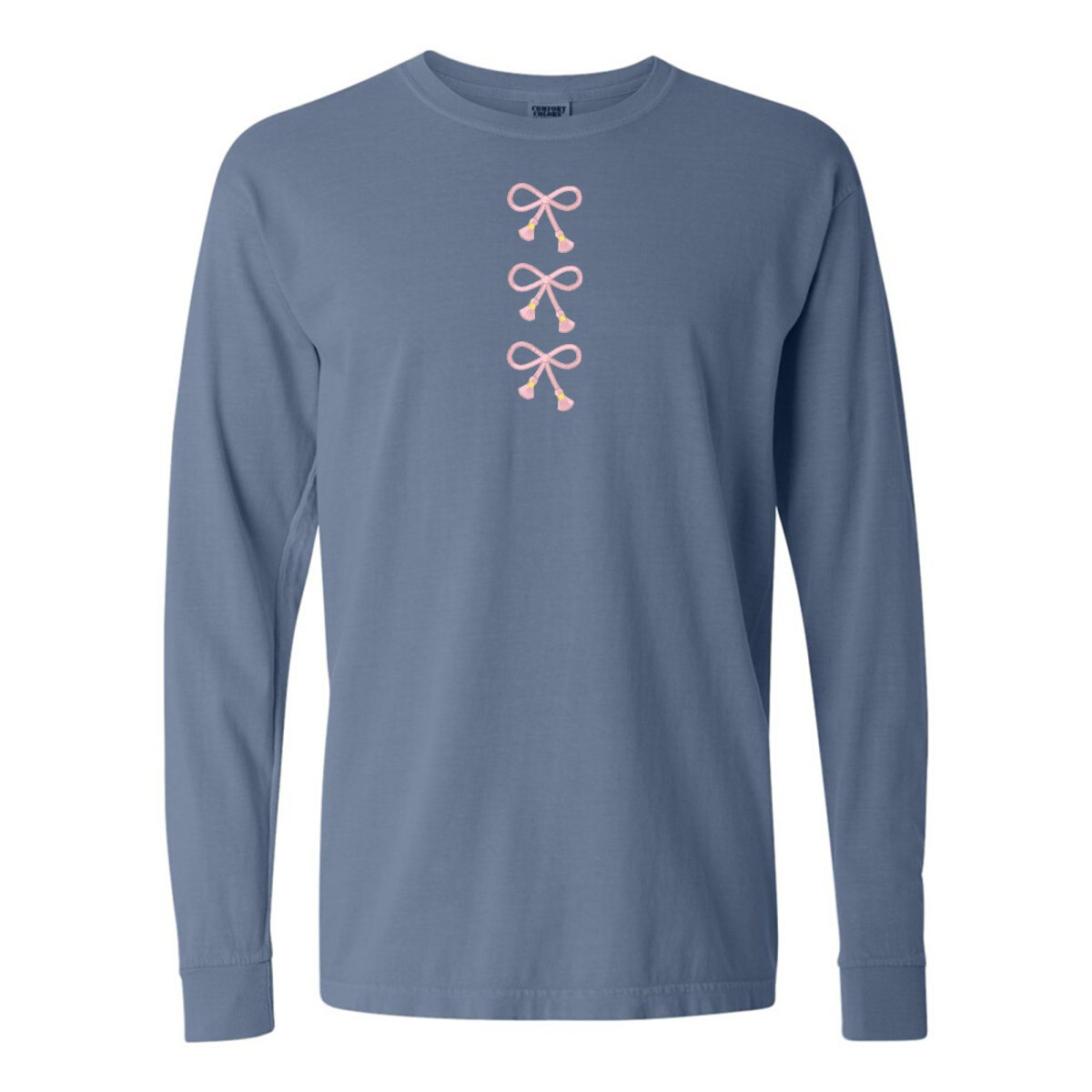 Add some flair to your wardrobe with our Tasseled 'Bows' Comfort Colors Long Sleeve T-Shirt. This stylish shirt features playful tassels and a loose fit for ultimate comfort.
