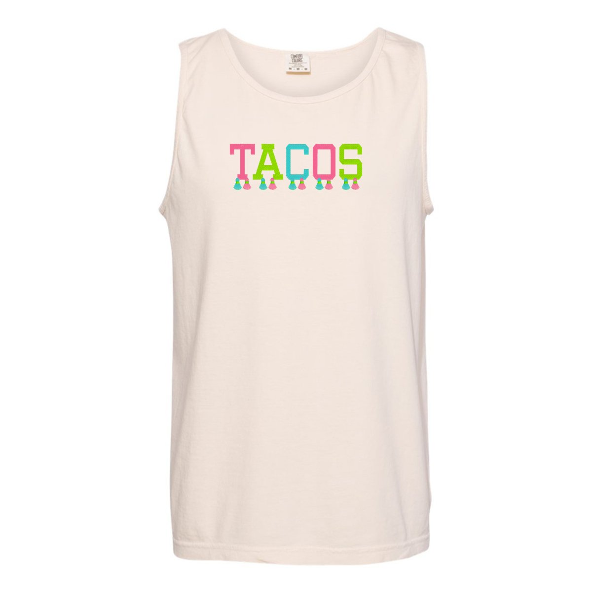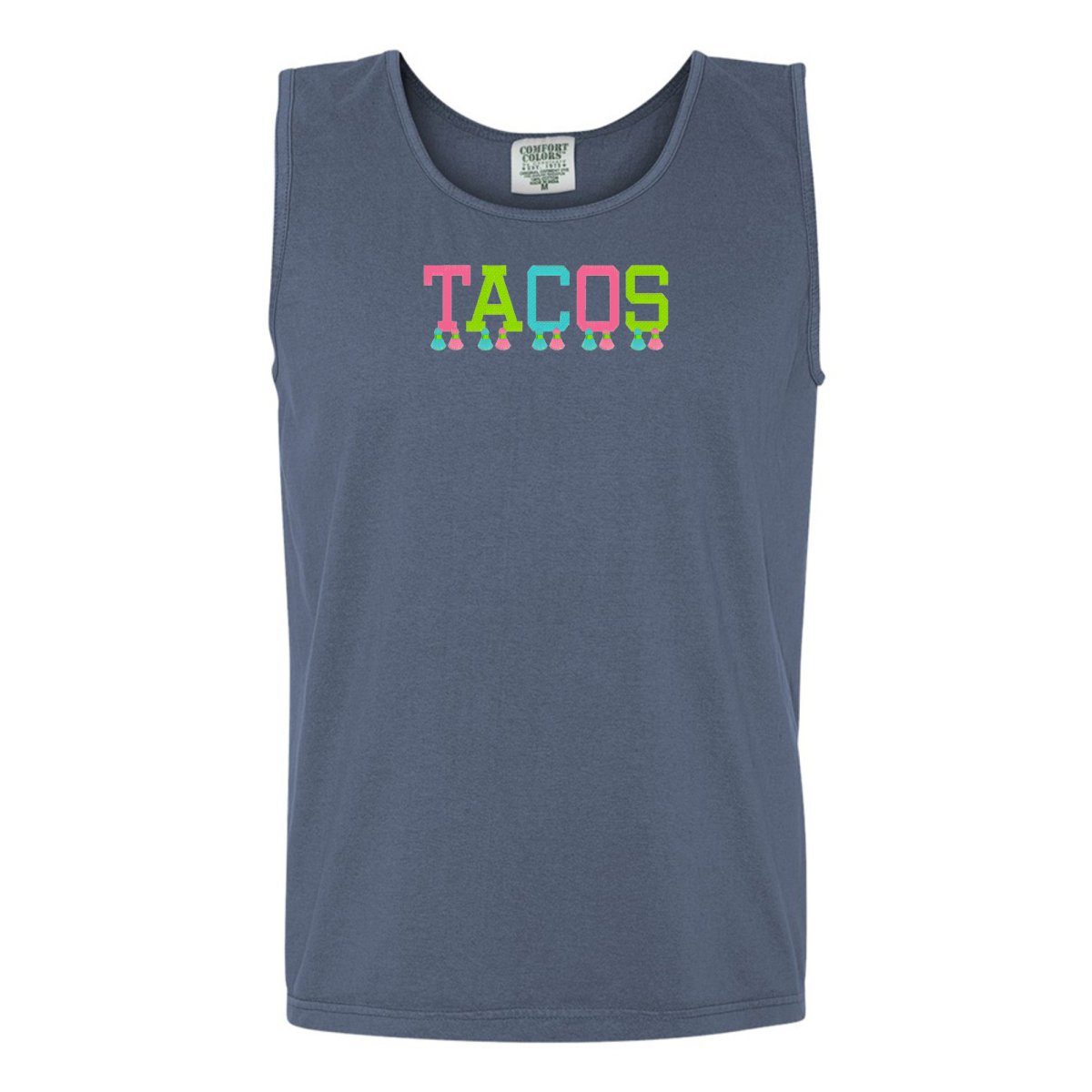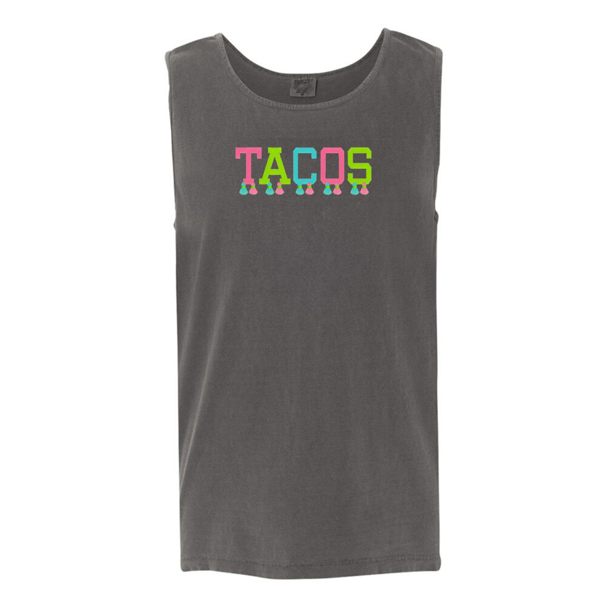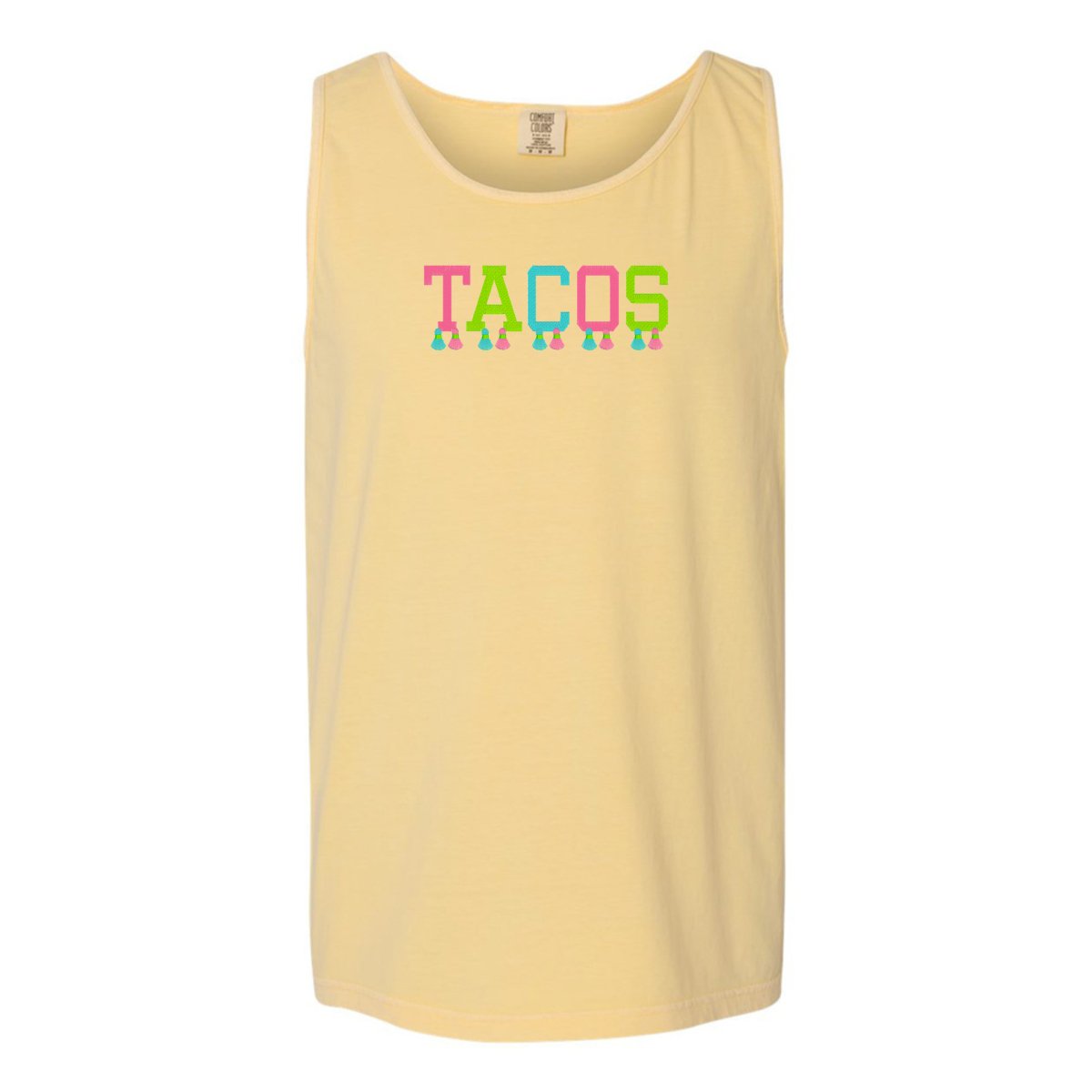 Introducing the Tasseled 'Tacos' Comfort Colors Tank Top. UM Signature Tasseled Embroidery + THE most durable, tank top you'll always want to wear. Perfect for casual days, playful night out, Cinco De Mayo, or Taco Tuesday🌮