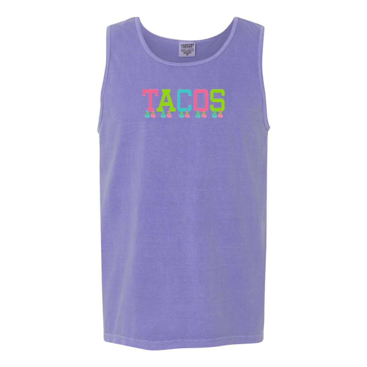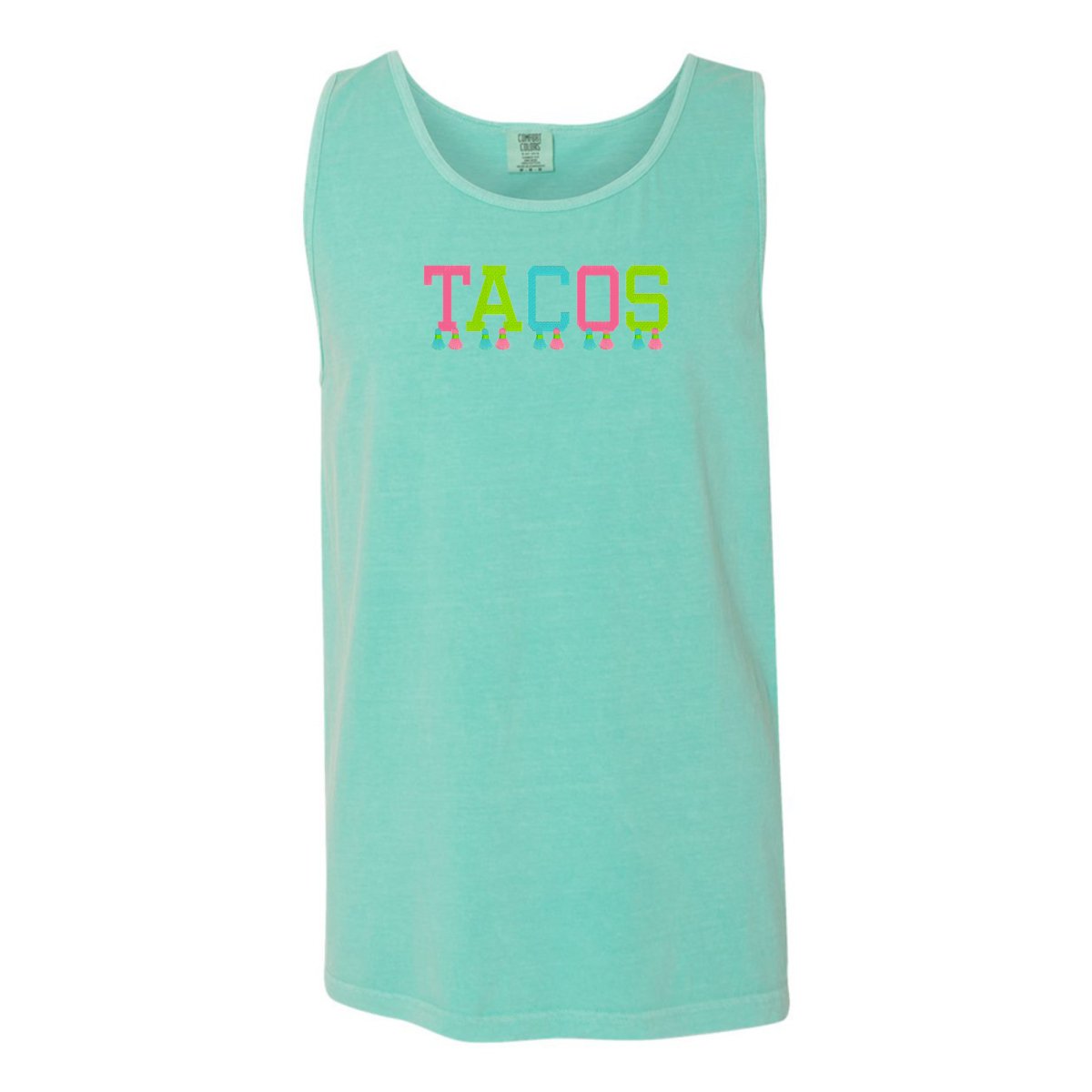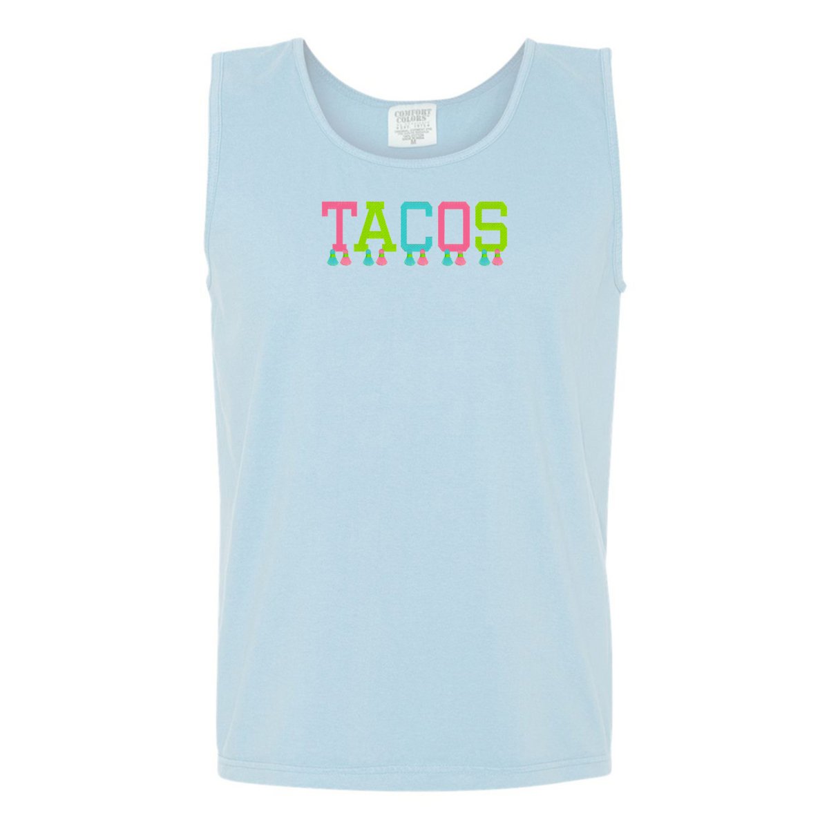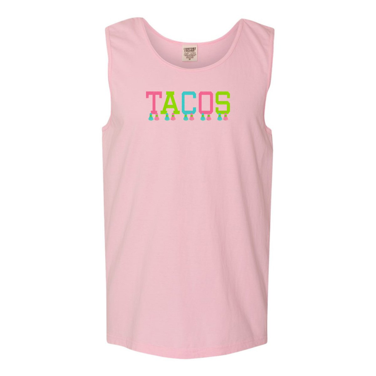 Introducing the Tasseled 'Tacos' Comfort Colors Tank Top. UM Signature Tasseled Embroidery + THE most durable, tank top you'll always want to wear. Perfect for casual days, playful night out, Cinco De Mayo, or Taco Tuesday🌮