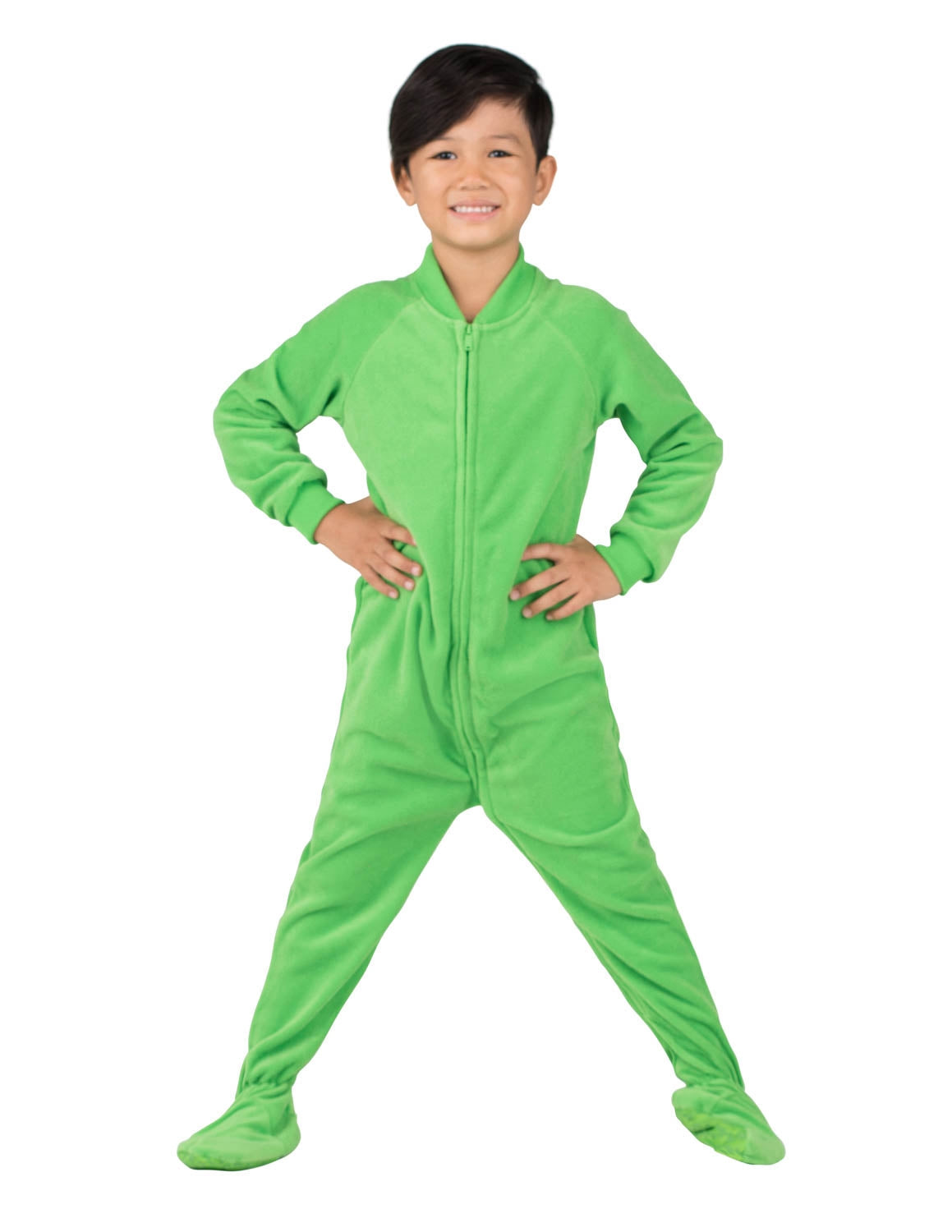 Toddlers will want to hop right into these cozy kermit green onesies for boys and girls! Perfect for relaxing on a chilly morning, sleeping wrapped in softness through the night, or adding personal touches for creative costumes! Perfectly brushed polar fleece gives a blanket feel to these fun and comfortable footie pj’s!