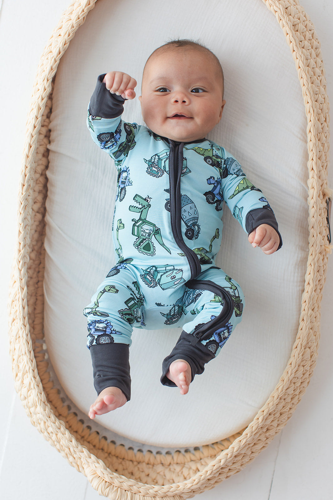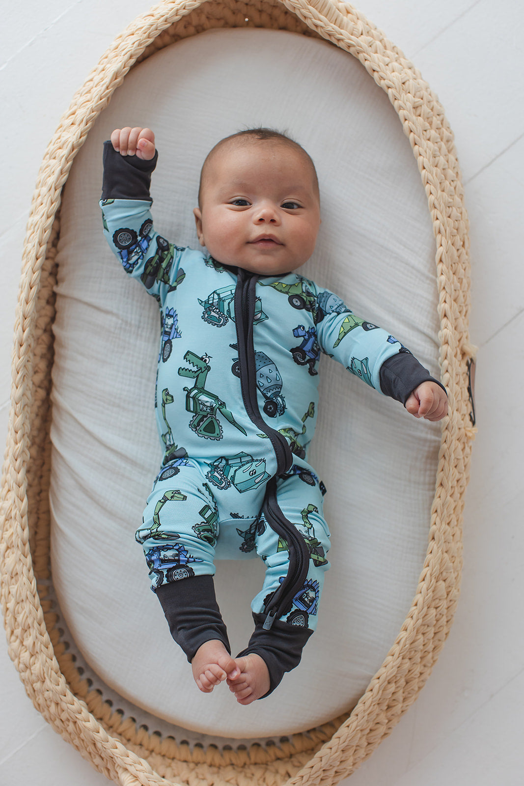 With fold-over wrist and ankle cuffs for added comfort and a double zipper for effortless diaper changes, our zippies are a game-changer for busy parents. The tagless design guarantees irritation-free wear, making them ideal for all-day lounging and play.