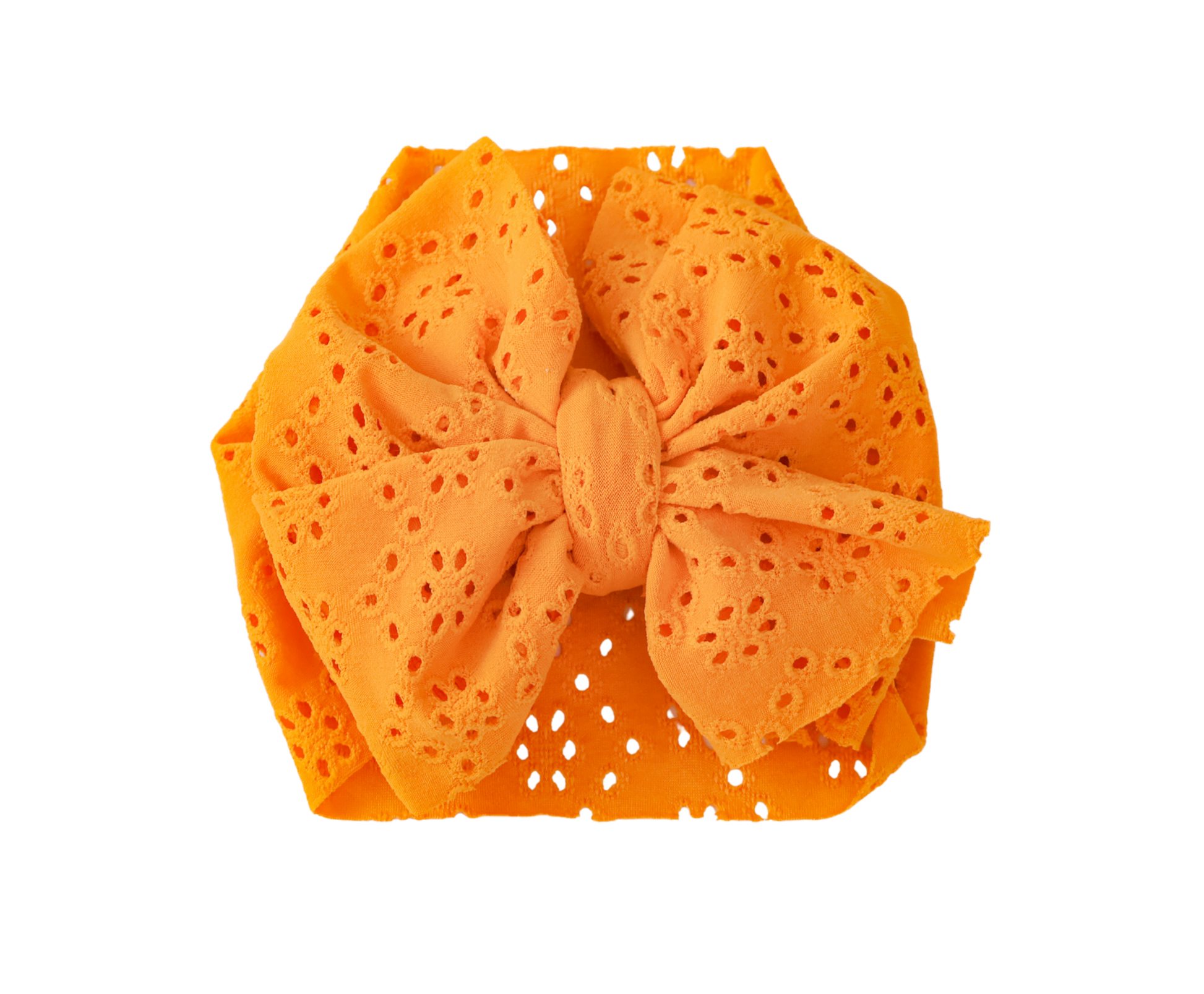 This soft mustard eyelet headwrap is the perfect fall accessory for your baby girl! The delicate bow design and breathable fabric make it both adorable and comfortable for everyday wear or special occasions.
