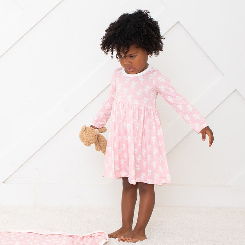 This dreamy Fairies Dress is perfect for little ones who love to twirl and play all day long. Crafted from soft, breathable bamboo fabric, it ensures gentle comfort against sensitive skin. The long sleeves provide just the right amount of warmth for cooler days, while the whimsical design sparks imagination and fun. Whether your toddler is exploring a magical garden or dancing around the room, this dress will keep them cozy and stylish through every frolic and flutter. A charming addition to their wardrobe that turns everyday moments into fairy tale adventures!
