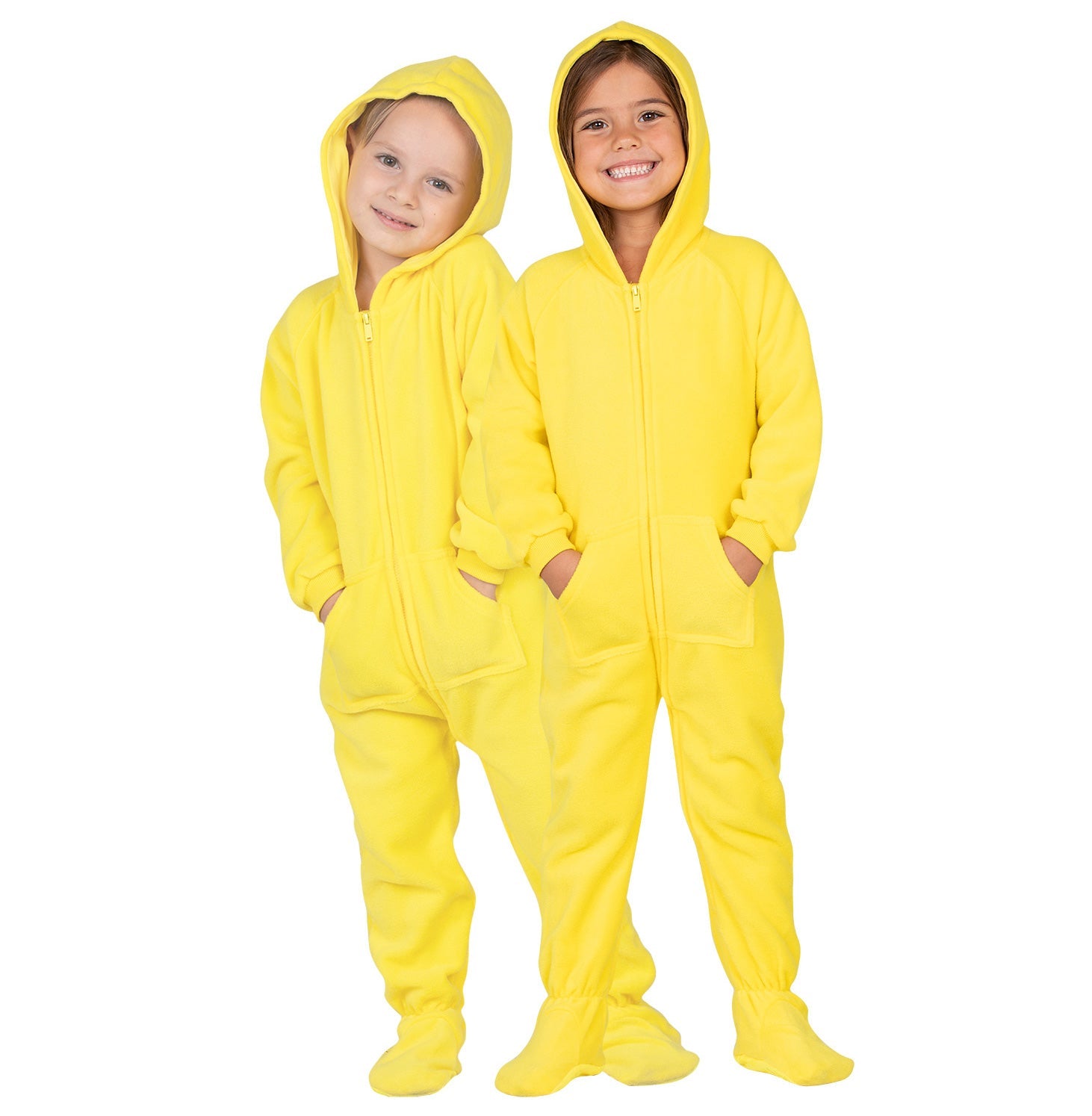 Bright as the sun and so much fun! These lemon yellow footie pj’s are made for men, women, boys and girls! Soft, plush fleece blankets your entire body in warm, luxurious fabric while hoodies and pockets make them as stylish and practical as they are cozy! Inclusive sizing options will ensure everyone finds just the right fit! Regular and plus size onesie pajamas have never looked so good and felt so great!