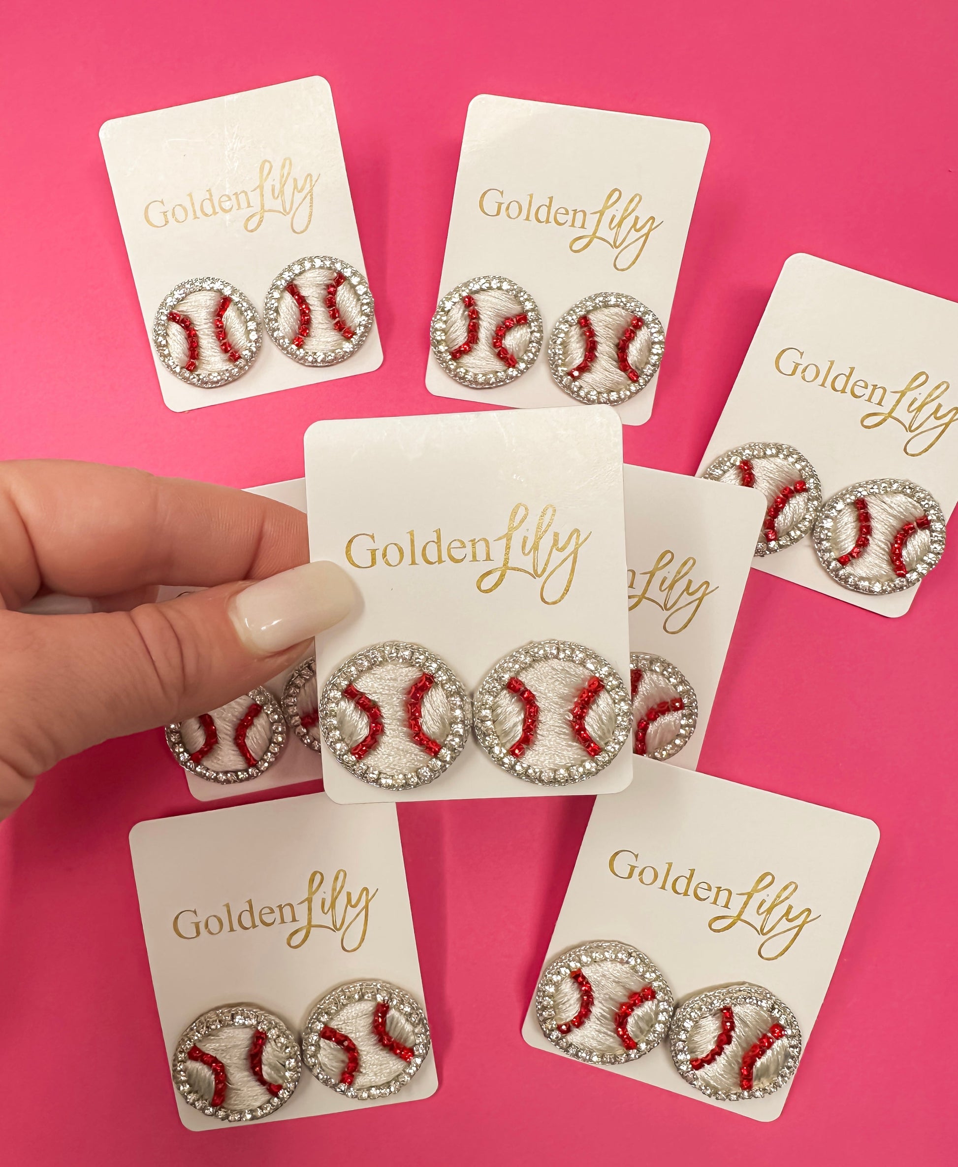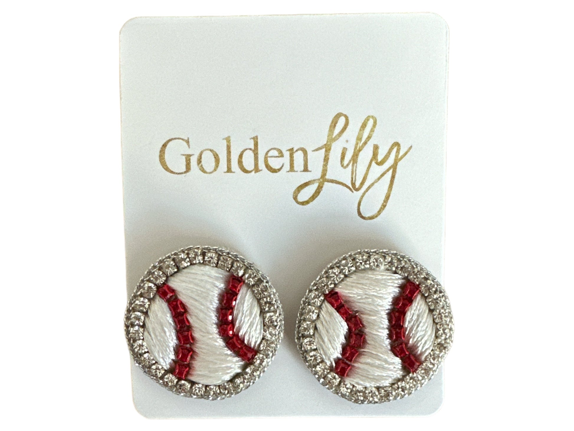 Sparkle and Shine at the ballpark with our Fancy Baseball Stud Earrings. Embellished with rhinestone and seed bead detail.