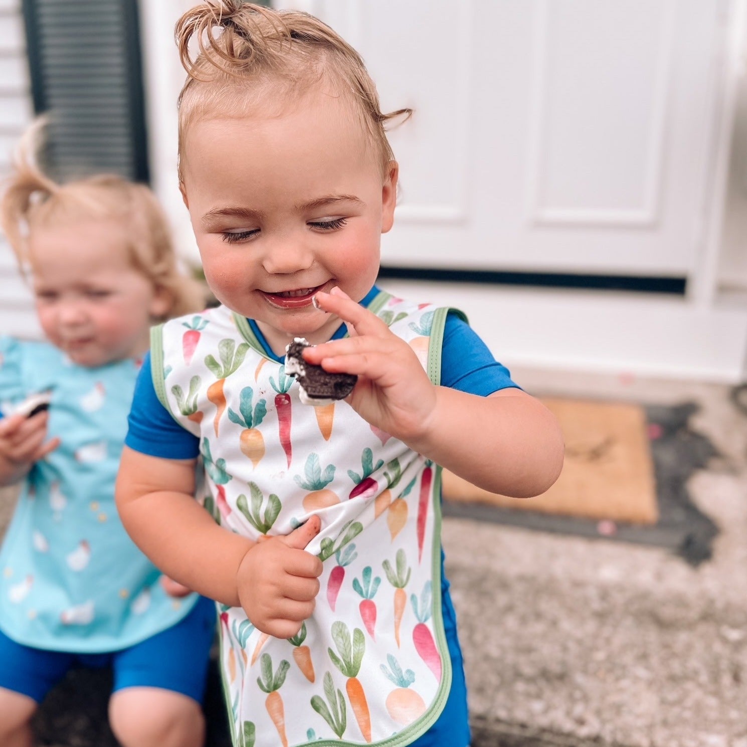 Meet the best-selling Bapron® the bib-apron hybrid parents swear by for stress-free meals, creative play, and everyday messes. Designed for comfort, safety, and serious coverage, this full-coverage smock keeps outfits clean while giving little ones freedom to move.