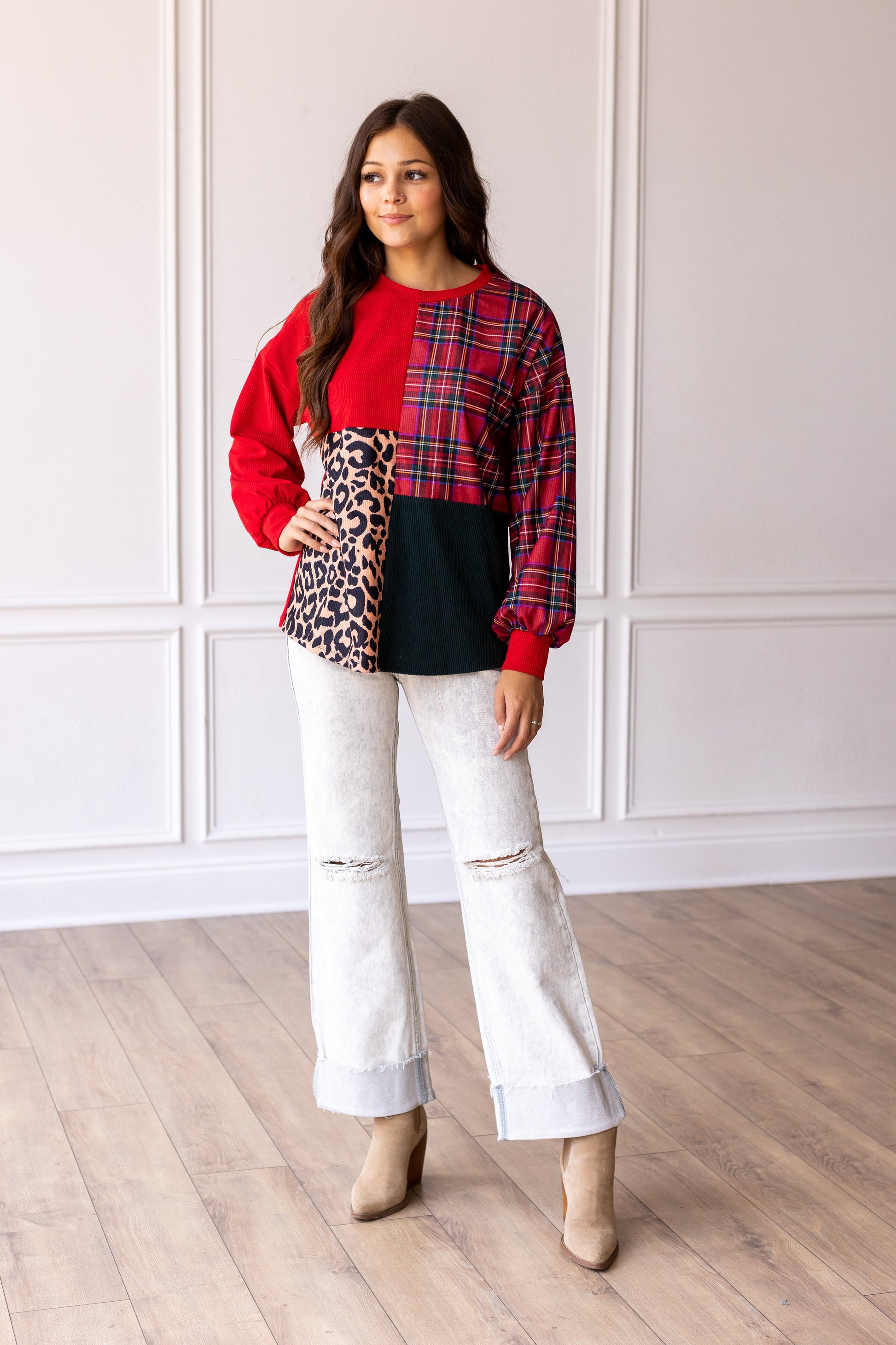 Make a bold statement with our Fierce Fusion Patchwork Top – a vibrant and trendy addition to your wardrobe. Crafted with a mix of eye-catching patterns and colors, this top seamlessly blends various styles, creating a unique and dynamic ensemble.