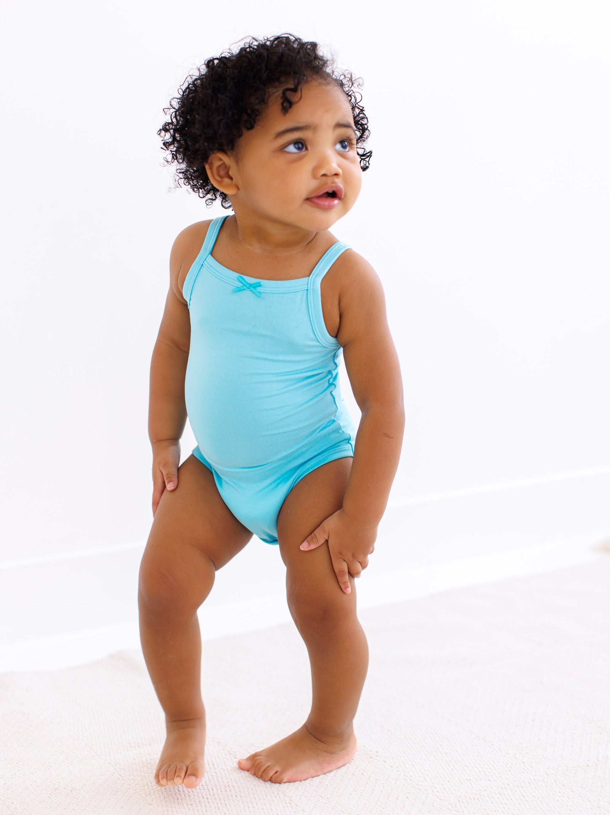 Elevate your little birdie's summer wardrobe with this bodysuit tank! Crafted from a premium blend of viscose from bamboo and spandex, this tank keeps them cool and stylish. Pair it with our coordinating biker shorts or wear it on its own. This bodysuit tank is a definite must-have for effortless style and undeniable comfort for your little one!
