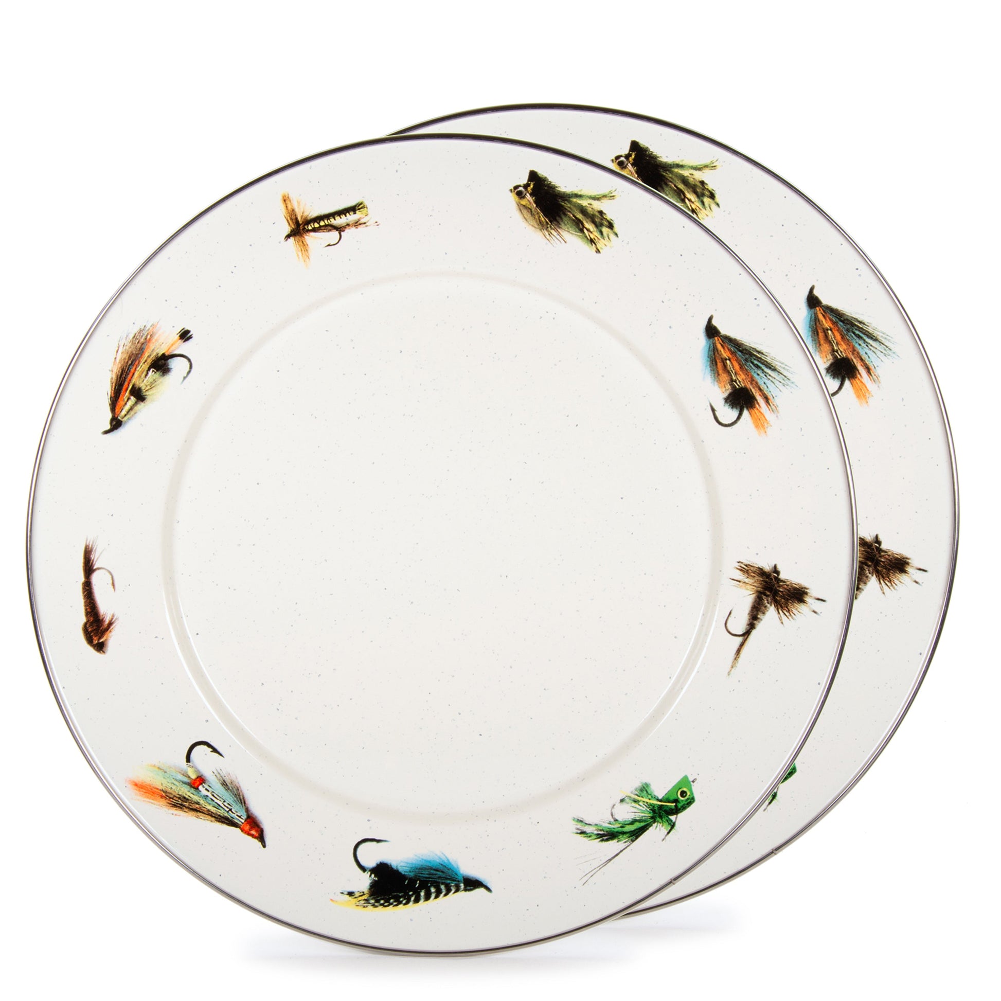 For the angler in your life, the Fishing Fly Chargers are a must-have. Designed with intricate fishing fly patterns, these enamelware chargers bring a rustic, outdoorsy feel to any meal. Perfect for serving your catch of the day or hosting a fishing-themed gathering. Set of 2.