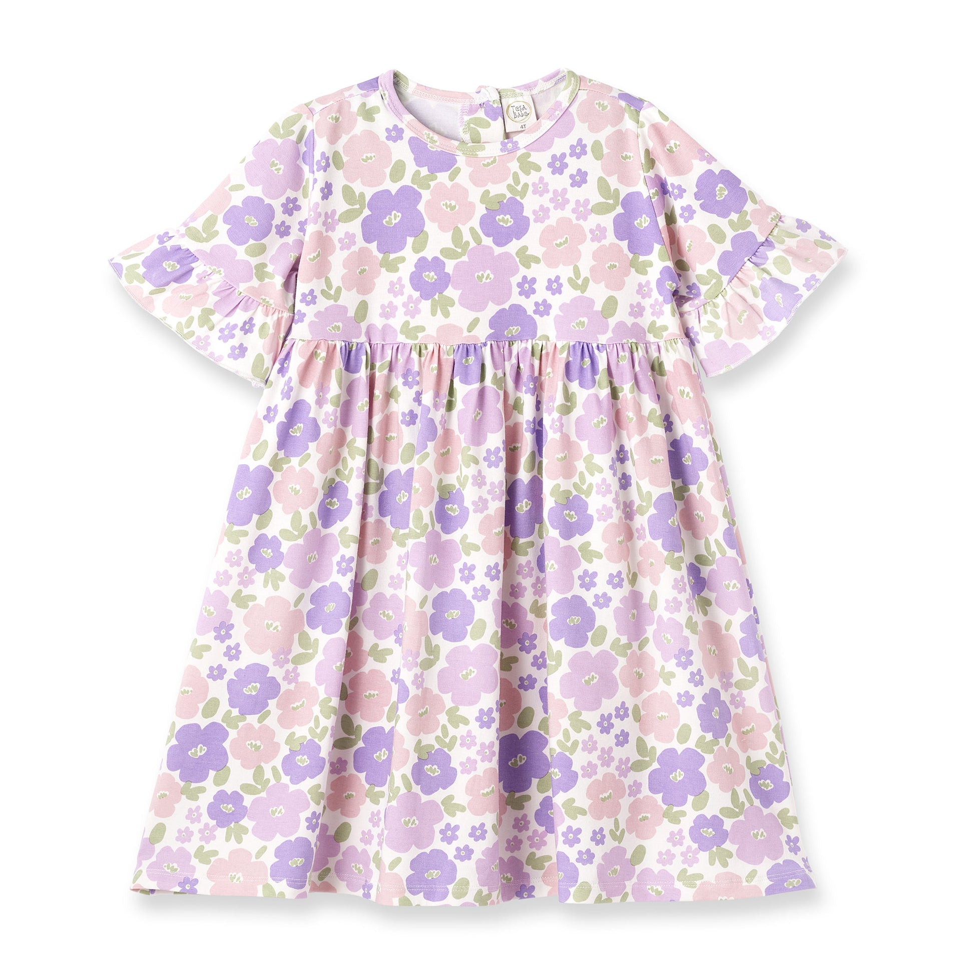 Your little one will shine in this floral-print dress, crafted from an ultra-soft bamboo/cotton/spandex blend jersey. With a breezy, comfy fit and eco-friendly, hypoallergenic fabric, it’s perfect for playdates, parties, or just everyday cuteness! The pastel blooms and fluttery sleeves add a touch of charm, while the breathable and absorbent design keeps her cool and happy all day long. Easy to care for—just machine wash warm and tumble dry low—this dress is as practical as it is pretty!