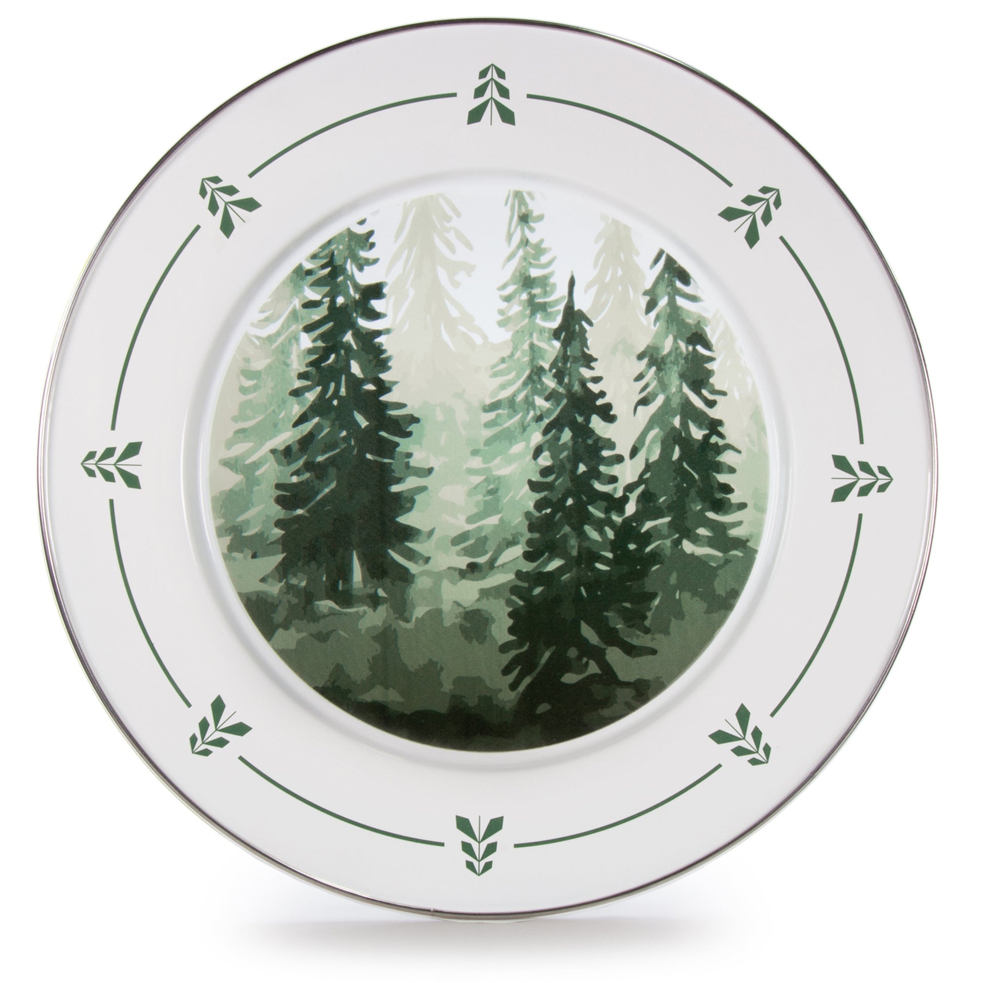 Inspired by the tranquil beauty of the woods, the Forest Glen Chargers feature nature-inspired designs that add a calming touch to your table. Perfect for seasonal meals or woodland-themed decor, these enamelware chargers create a warm and inviting atmosphere. Set of 2.