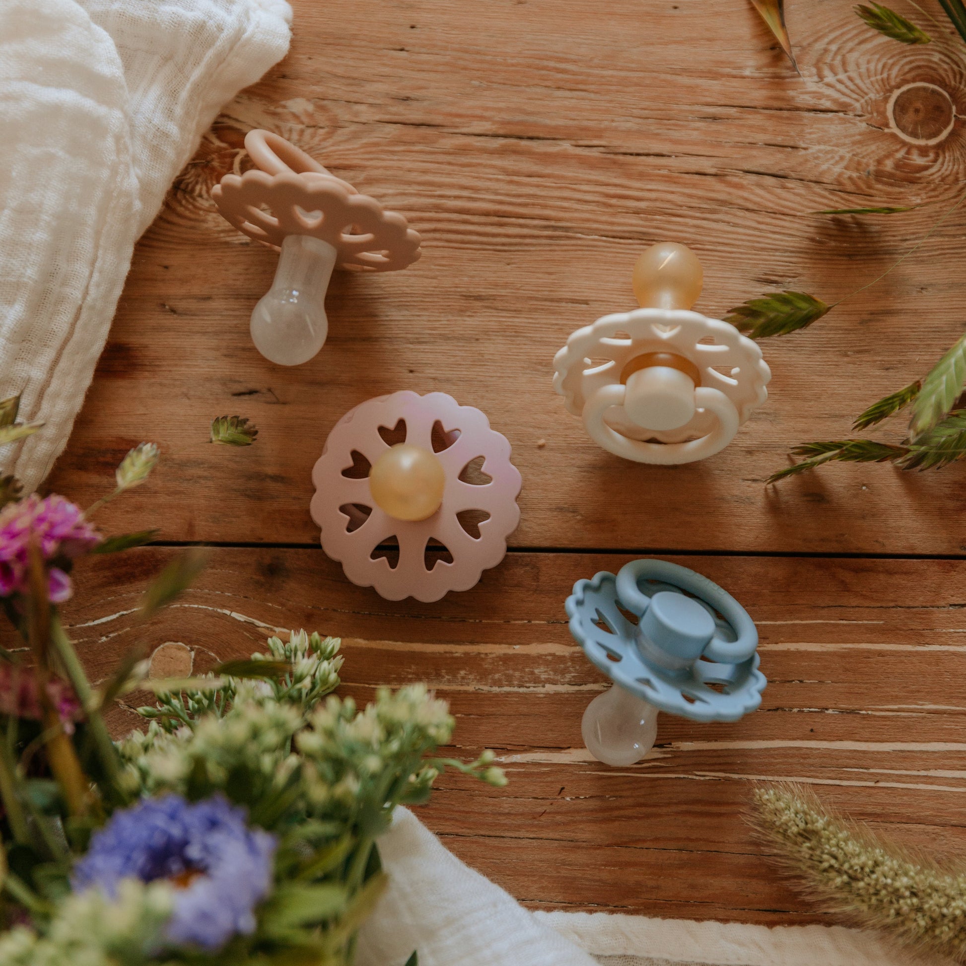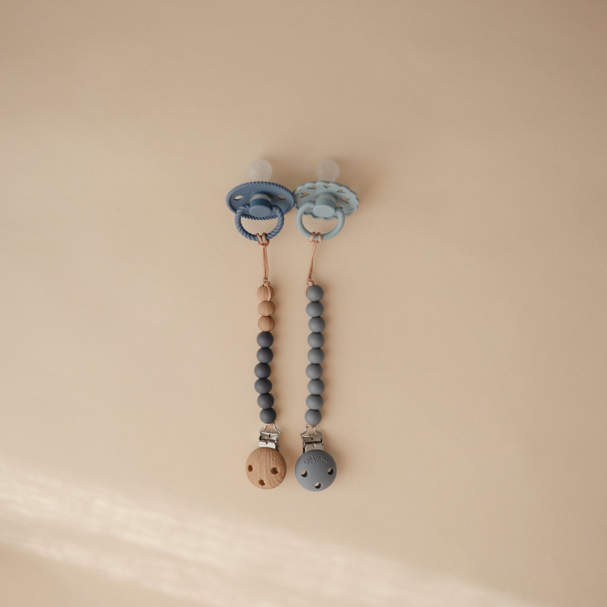 FRIGG Fairytale silicone pacifiers are thoughtfully designed and made in Denmark for your baby's comfort and safety with an improved SilkySoft™ medical grade silicone nipple and patented Click-Lock® system. The outward curve keeps the pacifier off baby's delicate skin while air holes and a security handle give parents extra peace of mind. The beautiful colors and design draw inspiration from timeless fairy tales by Danish author Hans Christian Andersen.