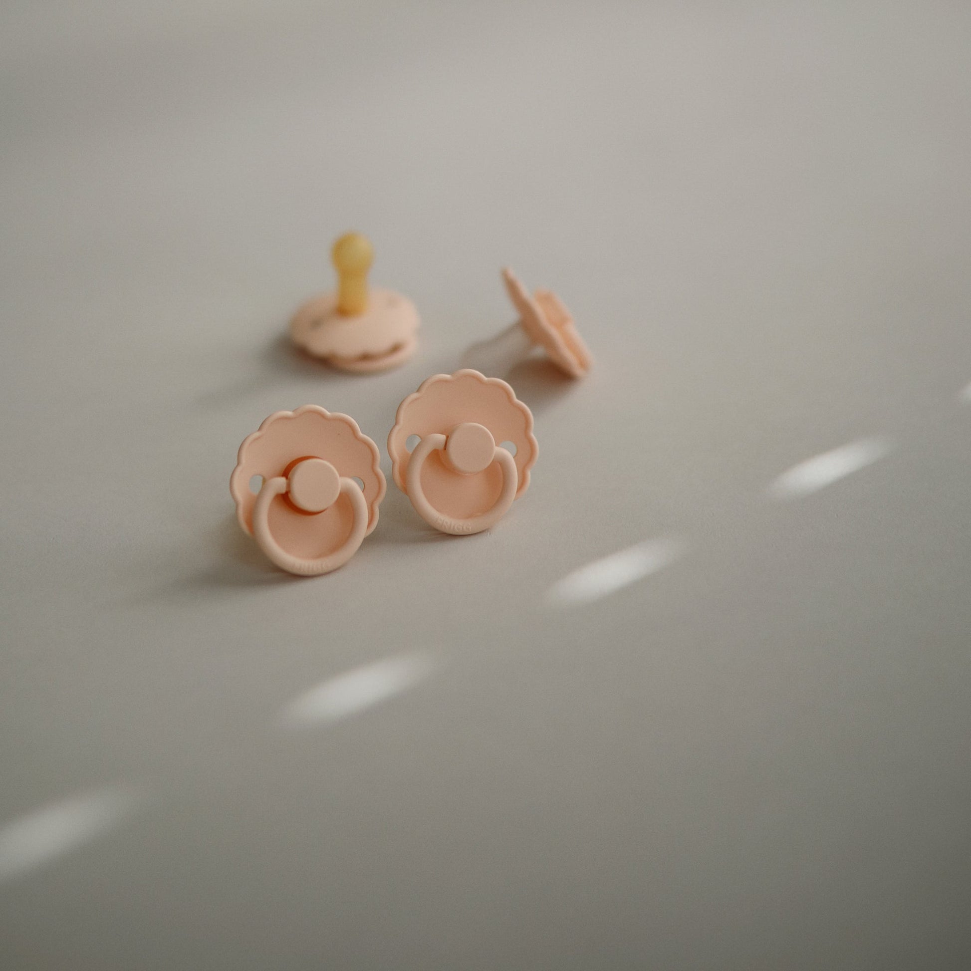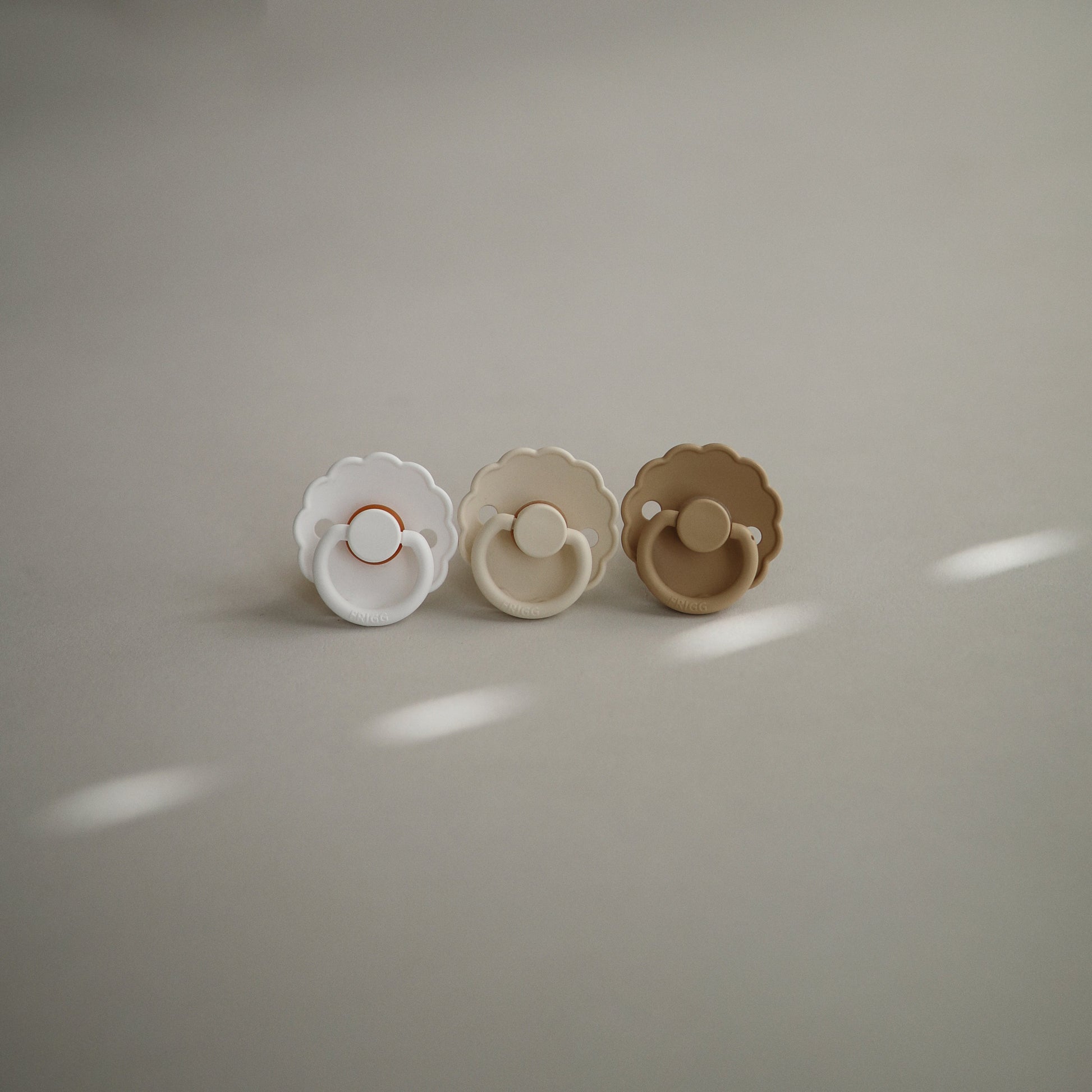 The FRIGG line of daisy silicone pacifiers with improved SilkySoft™ nipple and an innovative Click-lock System has been thoughtfully designed for your baby's comfort. The outward curve keeps the pacifier off their delicate skin, while features like air holes and a security handle ensure your baby stays safe. Available in a range of soft colors, FRIGG pacifiers make a beautiful addition to your collection of baby essentials.