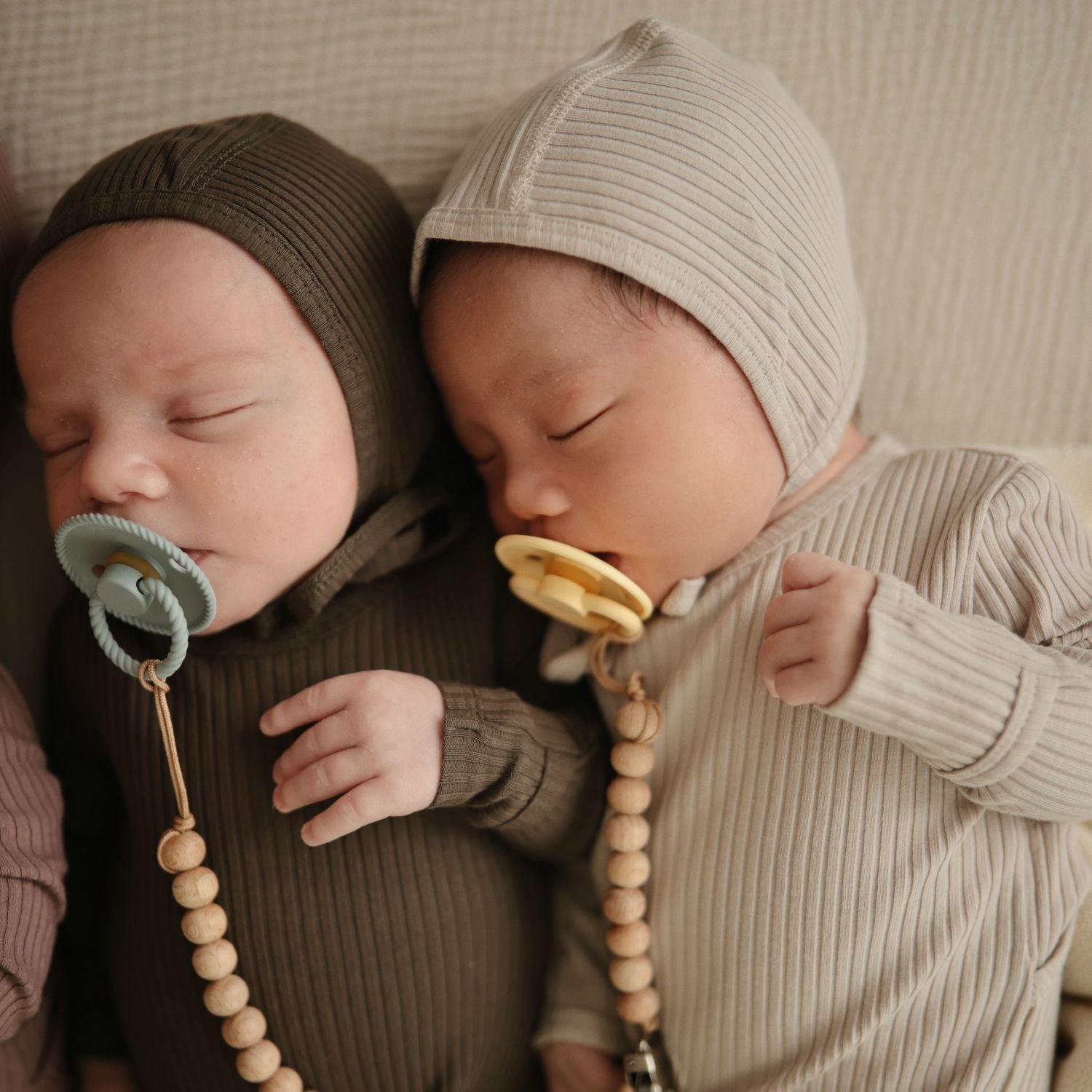 The FRIGG line of silicone pacifiers have been thoughtfully designed for your baby's comfort. The outward curve keeps the pacifier off their delicate skin, while features like air holes and a security handle ensure your baby stays safe. Available in a range of soft colors, FRIGG pacifiers make a beautiful addition to your collection of baby essentials.