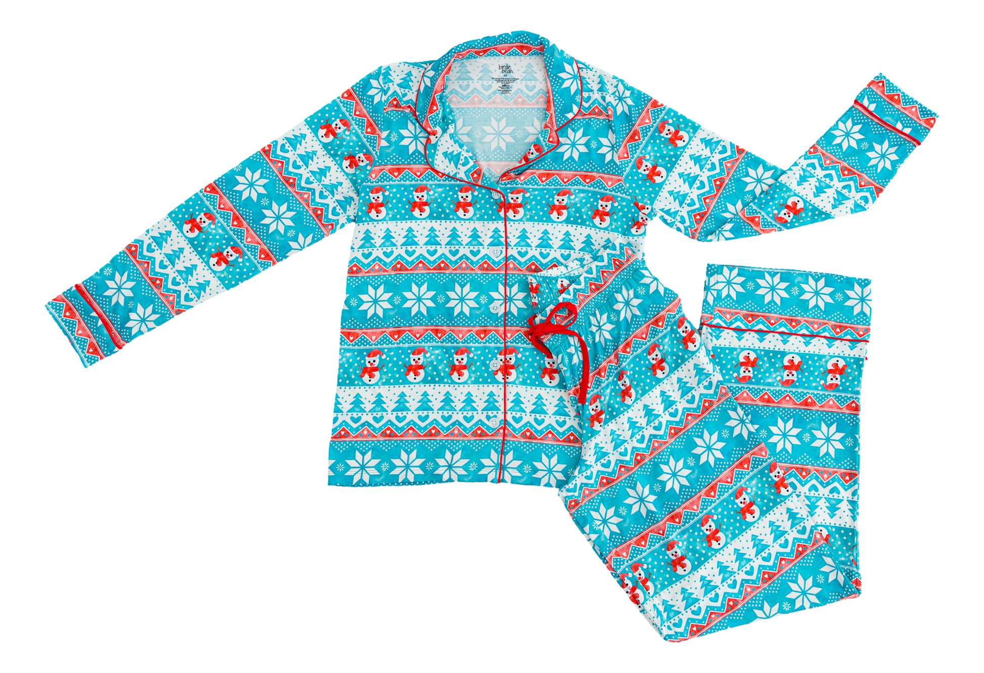 Get cozy with a cup of cheer! This festive lounge set wraps you in holiday spirit and cloud-soft comfort. Featuring a whimsical fair isle print with cheerful snowmen, snowflakes, and wintery patterns, it’s the perfect look for movie nights, gift wrapping marathons, or just curling up fireside. Crafted from our signature bamboo blend, it’s stretchy, breathable, and irresistibly soft—holiday magic you can wear!