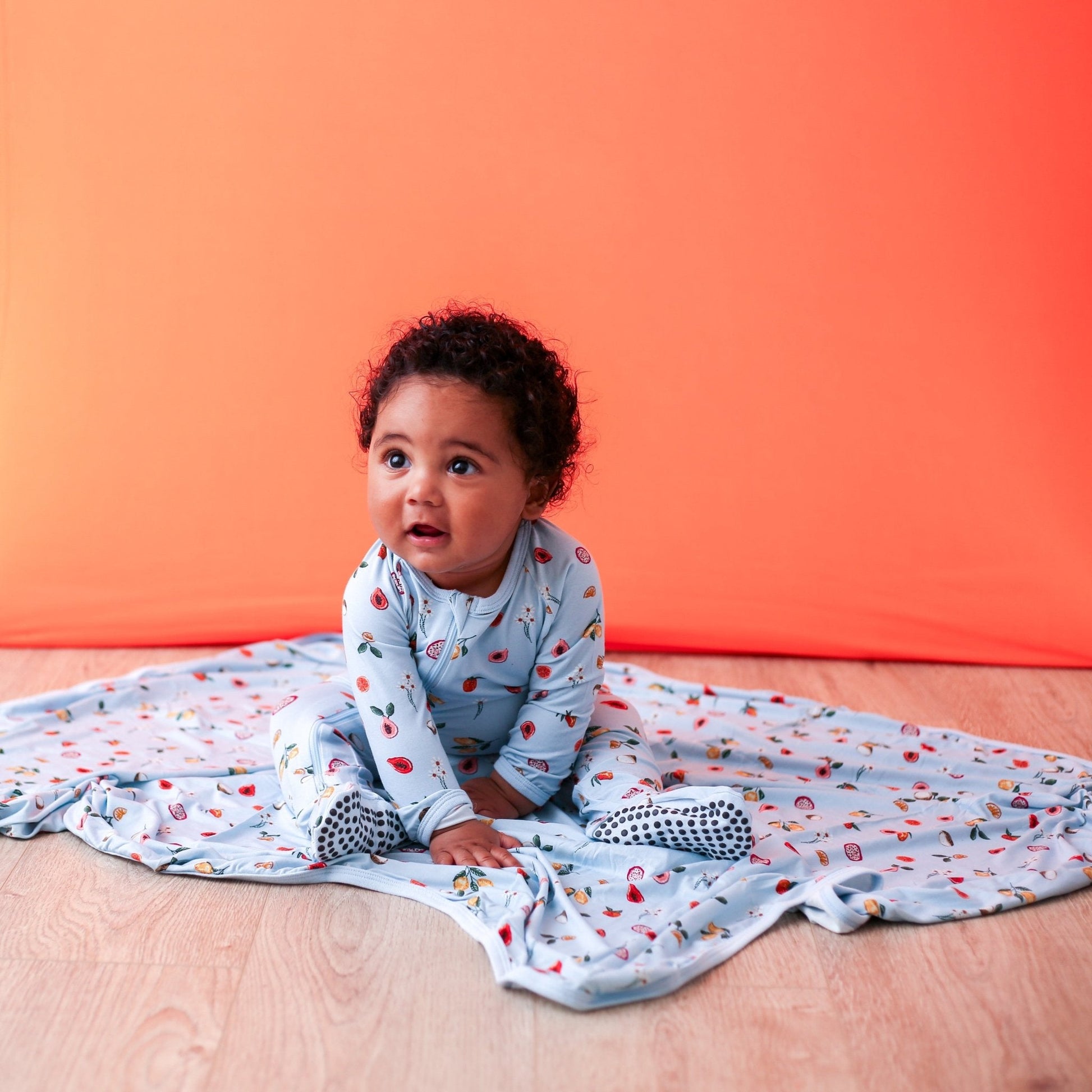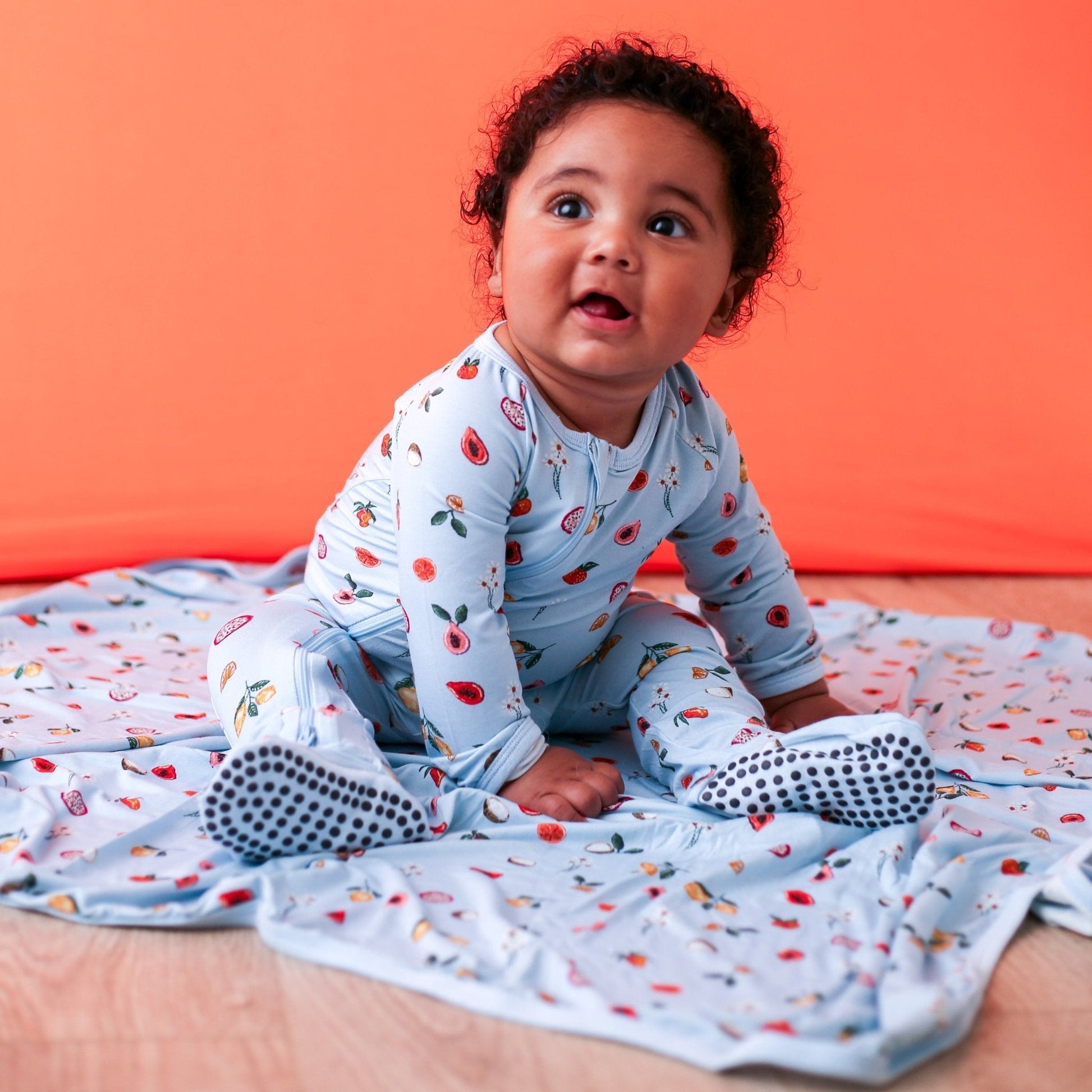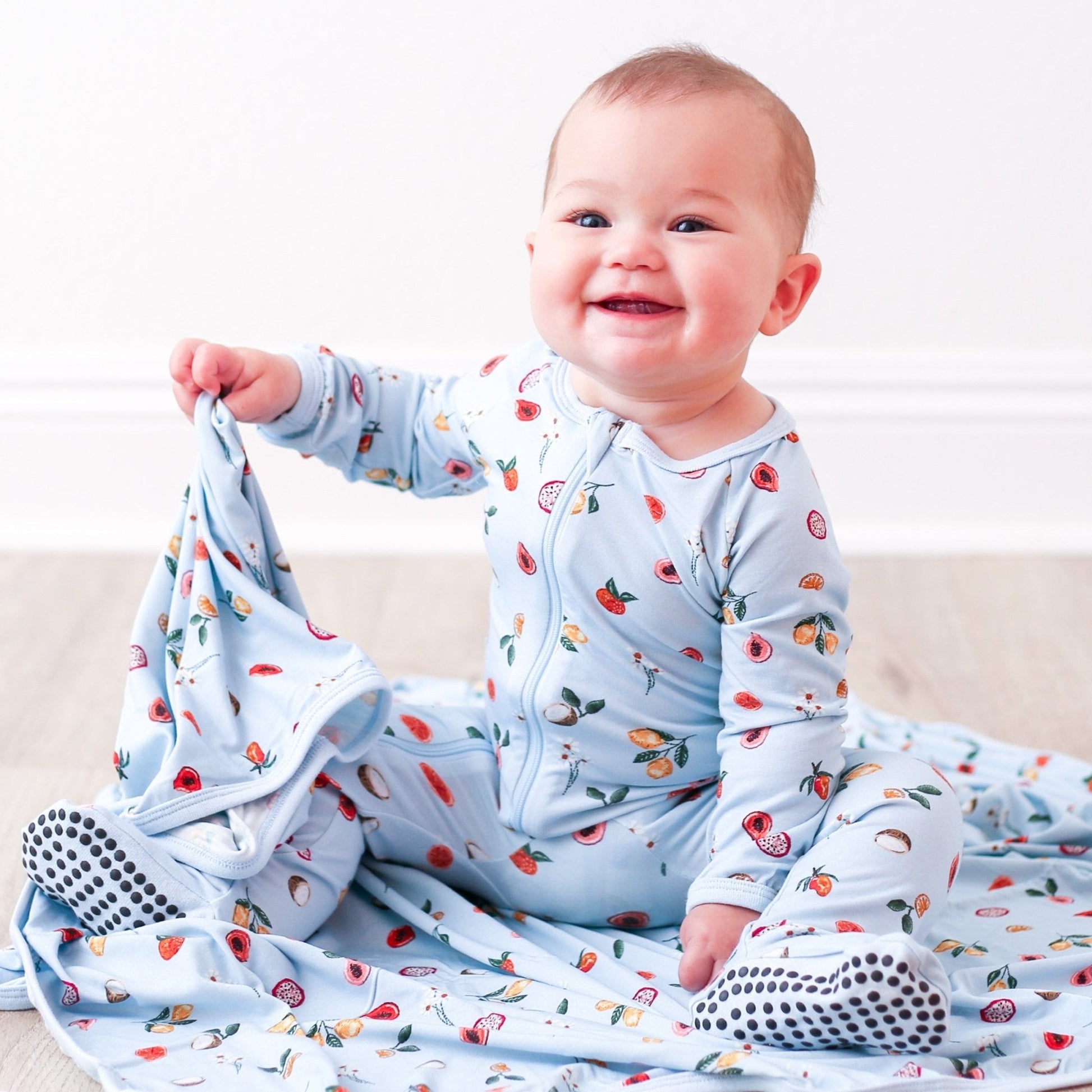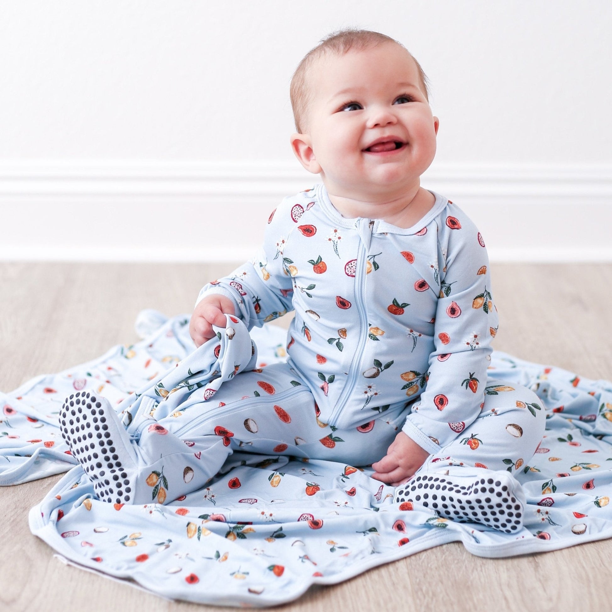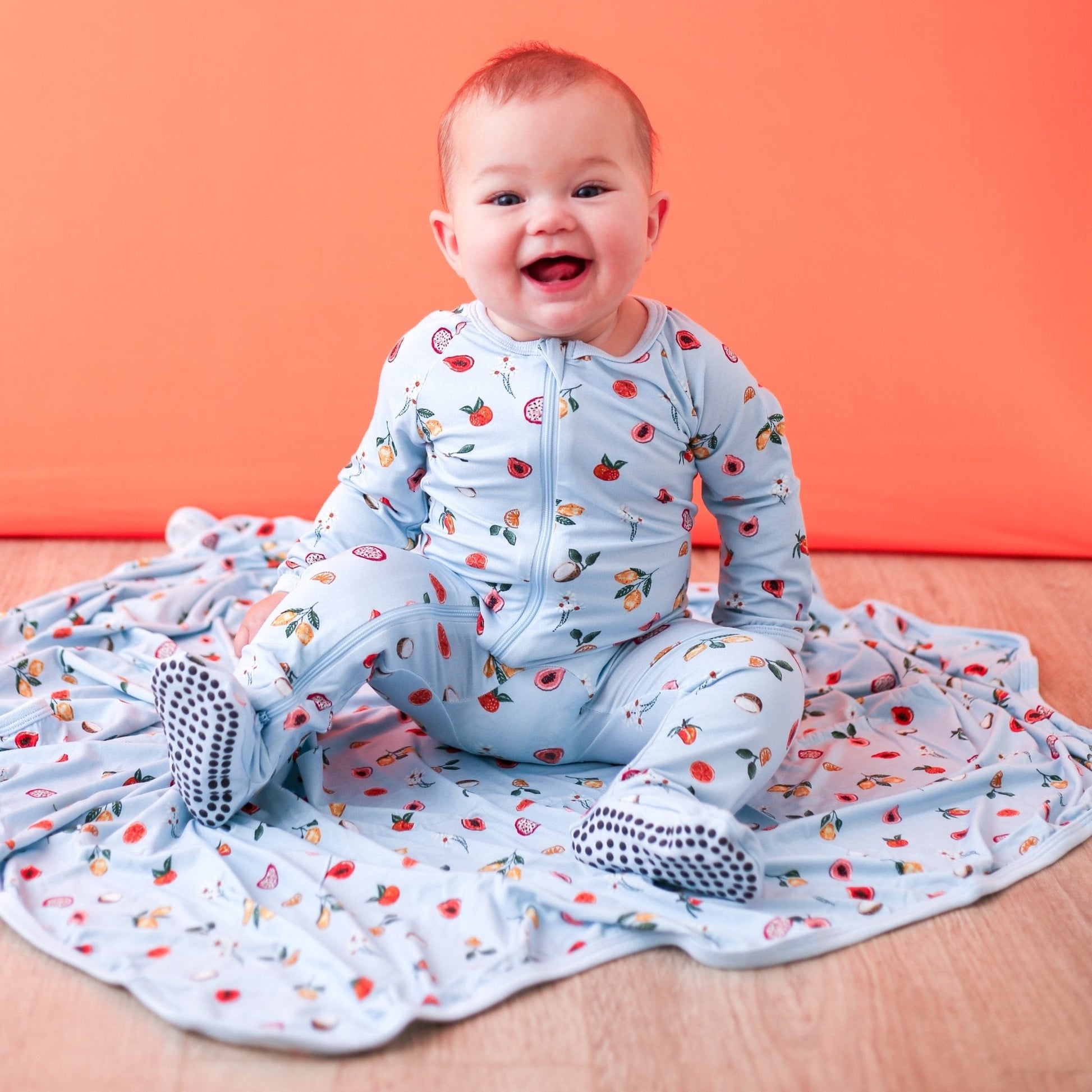 Our amazingly soft fruit frenzy footies will keep little one's super cozy and snuggly from top to bottom! These soft as a baby's bottom footies are perfect for year round lounging. Zipper from neckline to those adorable little chubby feet make for easy breezy changing. We also made sure to add built in fold over hand mittens on small sizes to prevent scratching and worry free zip tabs to keep zippers away from little chins.Â