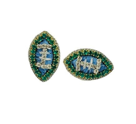 Game Day Football Stud Earrings - Thread - Green and Blue