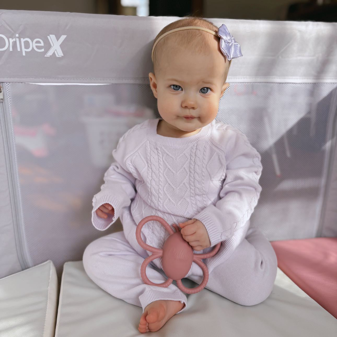 Equipped with a gentle rattle, this teether engages your baby's senses while providing soothing relief. Plus, it pairs perfectly with our Nash clip, ensuring that it stays off the floor and is always within reach!