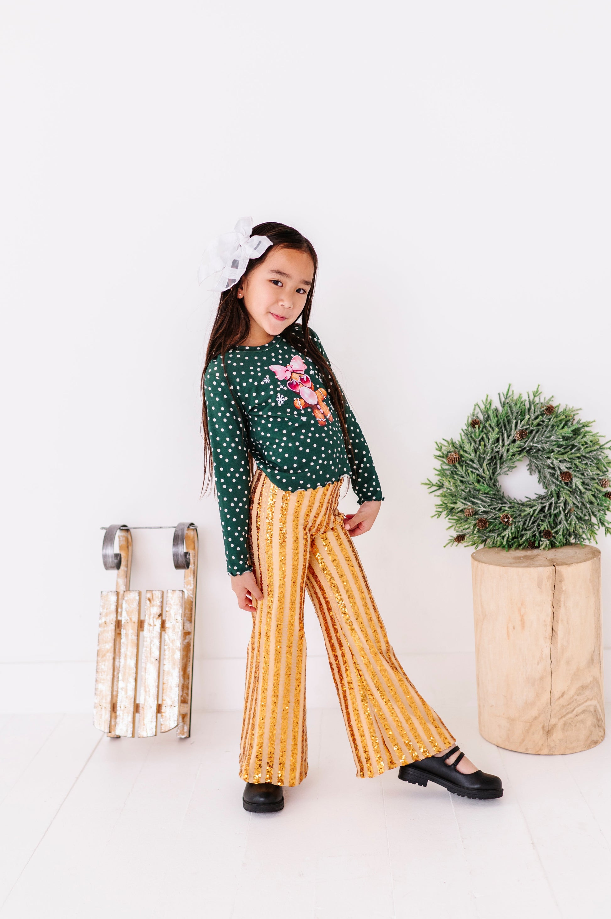 Gold Sequin Stripe | Wide-Leg Pants