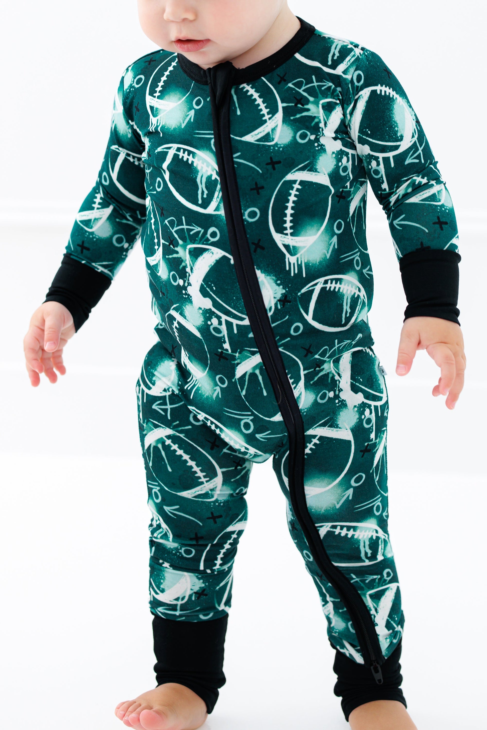 Graffiti Football Convertible Romper : GREEN AND WHITE/SILVER