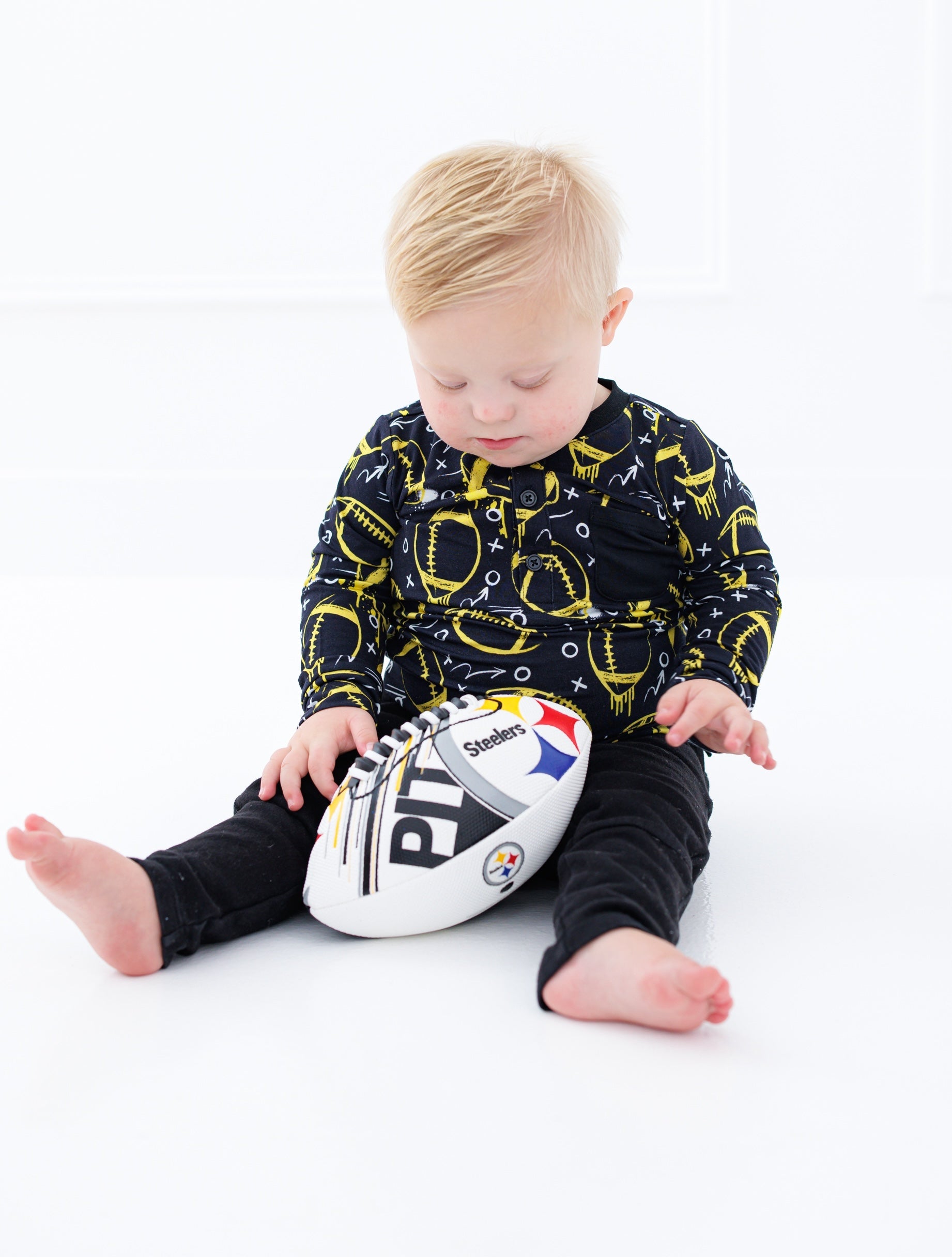 Graffiti Football Henley T-Shirt : BLACK AND YELLOW/GOLD
