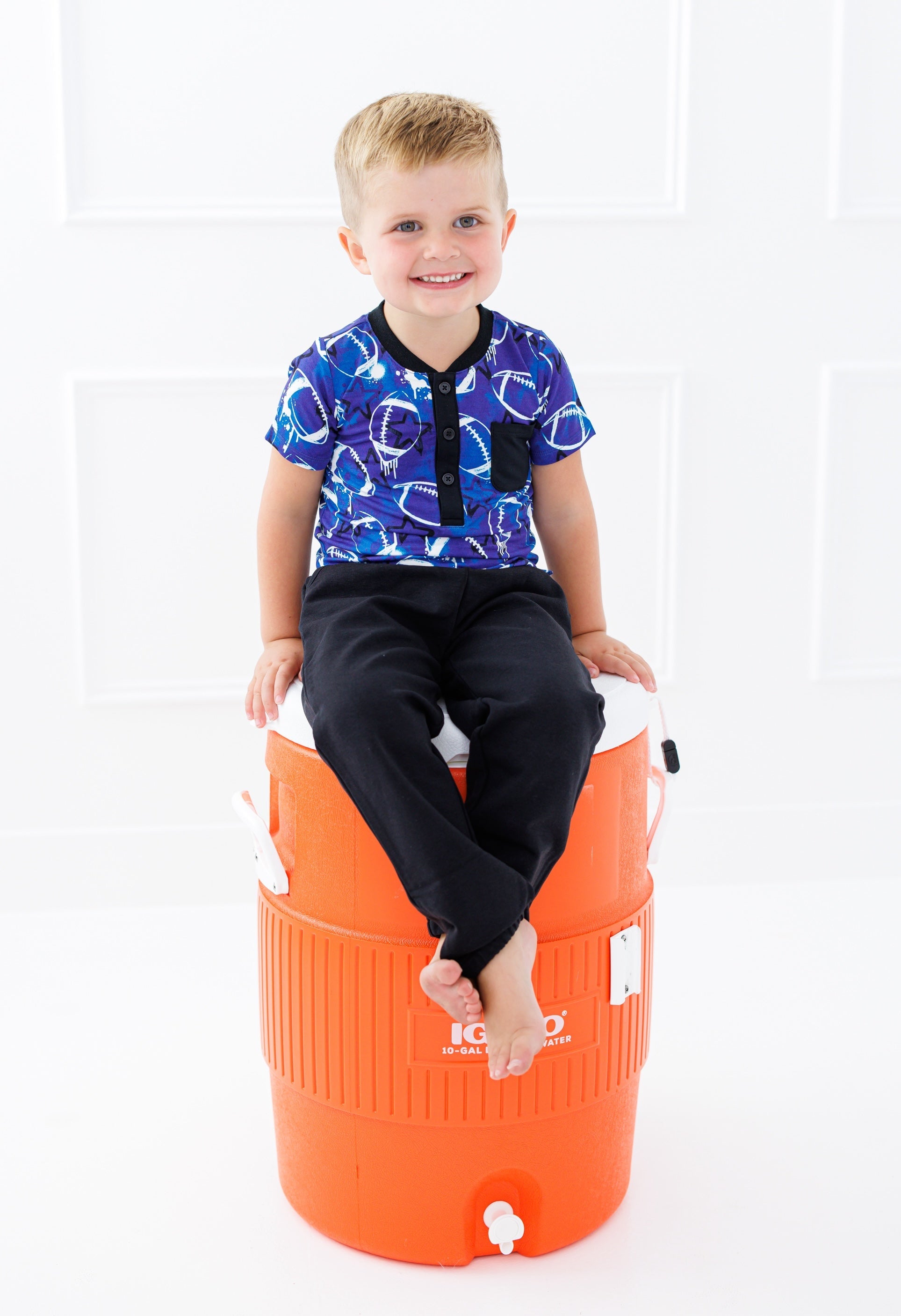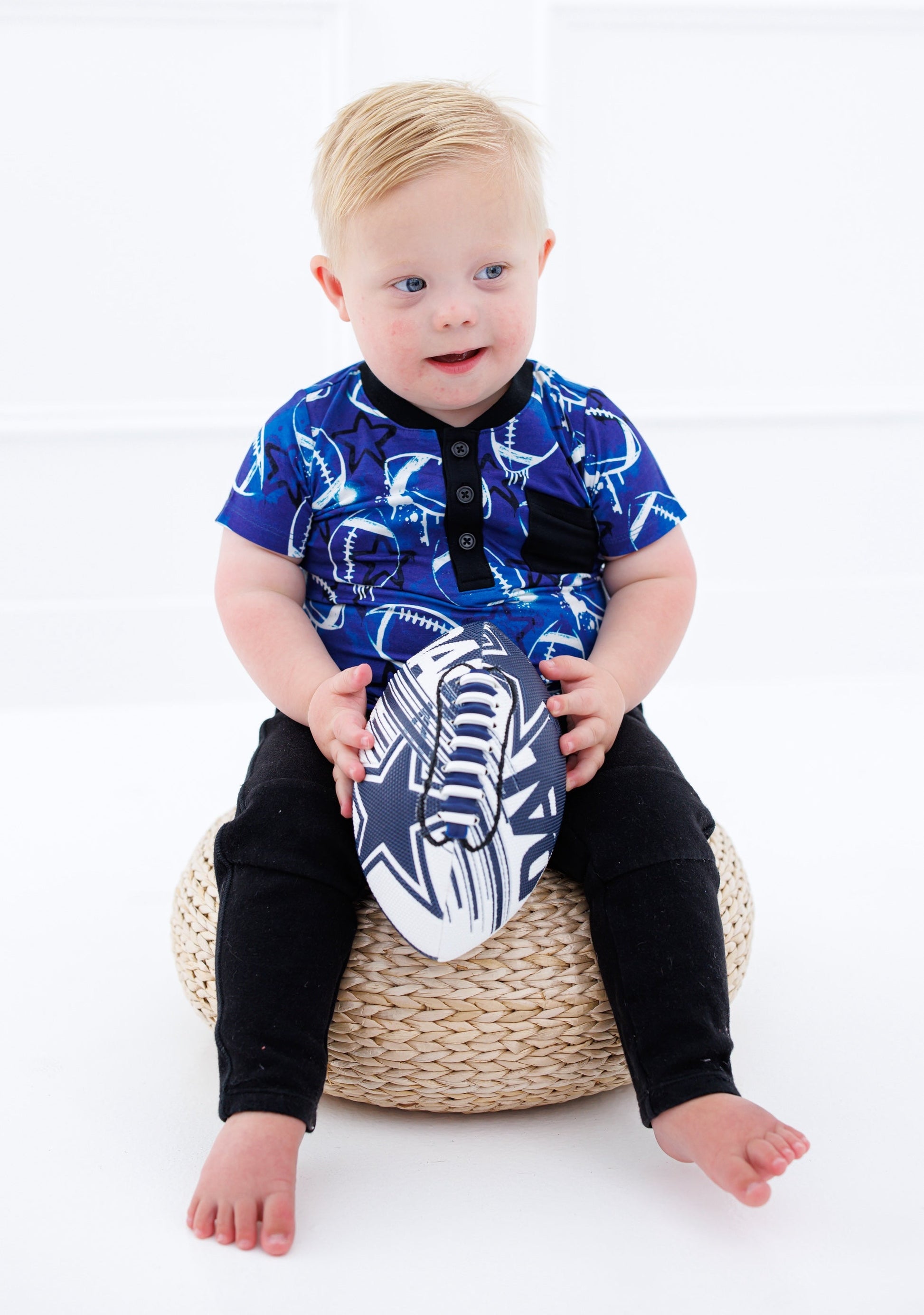 Graffiti Football Henley T-Shirt : BLUE AND WHITE WITH STARS