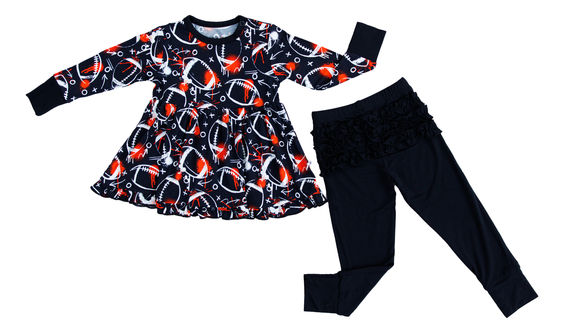 Graffiti Football Peplum Set : BLACK AND ORANGE