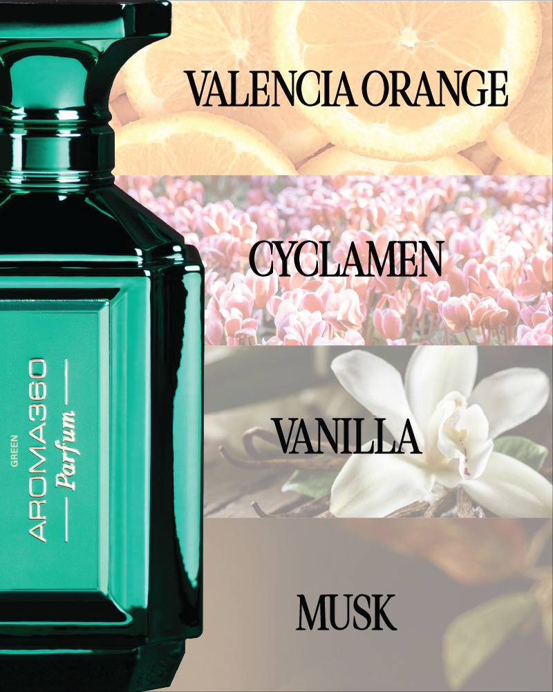Indulge in the rich and mysterious allure of Green. This luxurious fragrance captivates the senses with its exquisite blend of Valencia orange, cyclamen, vanilla, and musk, enveloping you in an aura of opulence. The sun-kissed Valencia orange unveils a refreshing and sweet aroma, while the delicate allure of white cyclamen petals adds a touch of refinement. Enhanced by the comforting essence of vanilla, the fragrance takes on a new level of richness and depth. As the scent lingers, the musk note creates an enigmatic character of this captivating fragrance. Immerse yourself in the essence of pure luxury with Green.