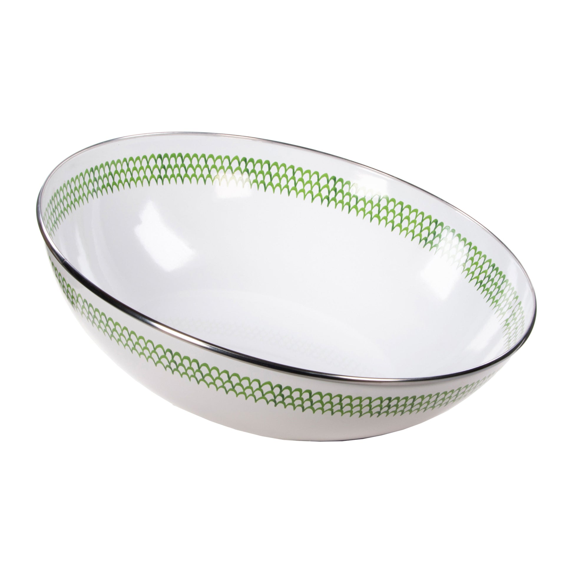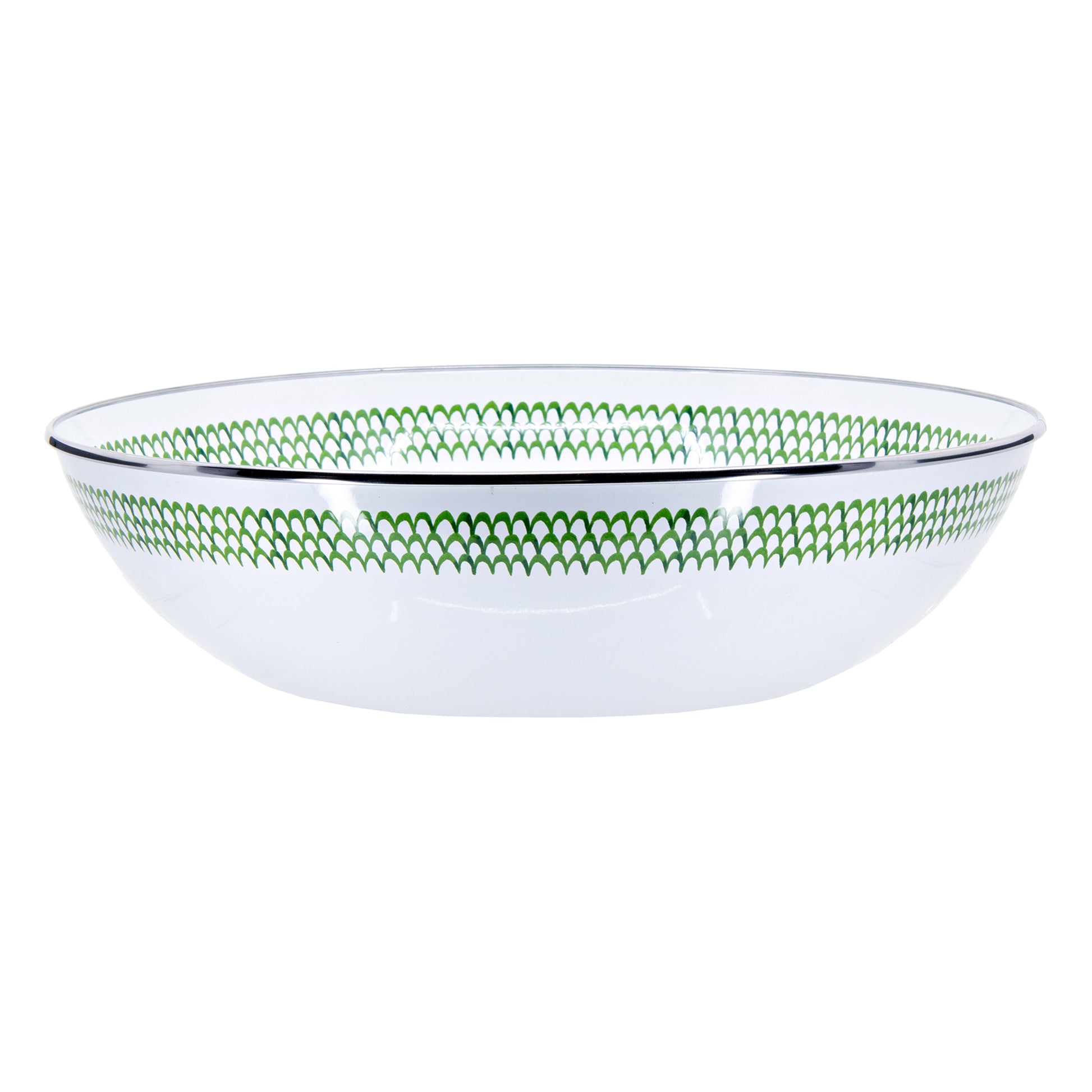 Add a fresh pop of color to your meals with the Green Scallop Catering Bowl. Crafted from durable enamelware, this bowl features a beautiful scalloped edge and a vibrant green hue, making it a standout piece for serving salads, pasta, or fruit. Perfect for larger gatherings, it combines style with practicality.