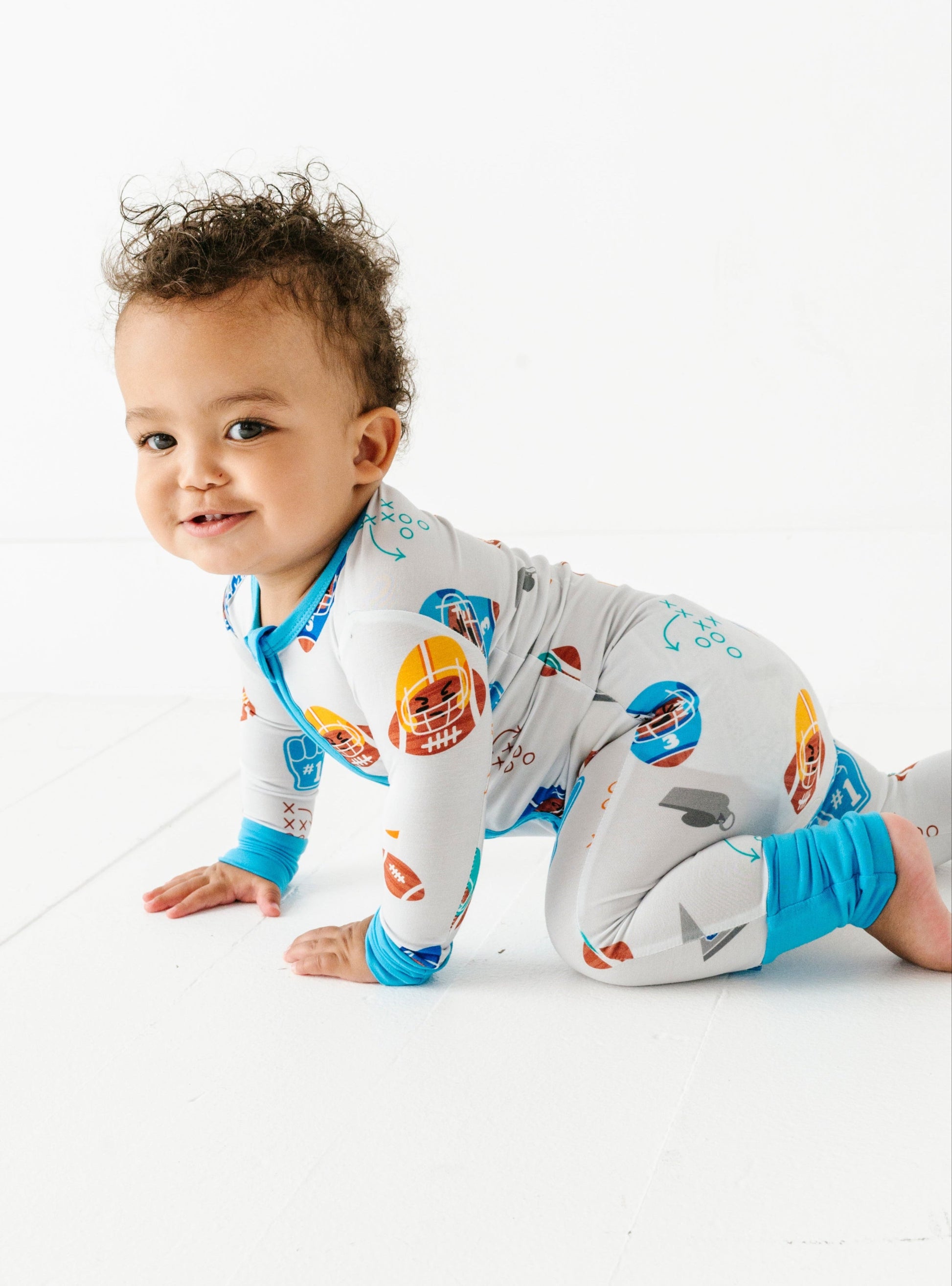 Romper or footie? Yes. Our fold-over feet cuffs flip this romper from playtime to snooze time in seconds, and the 2-way zipper makes diaper changes a quick drive down the field. Printed on our signature buttery-soft bamboo blend with just-right stretch.