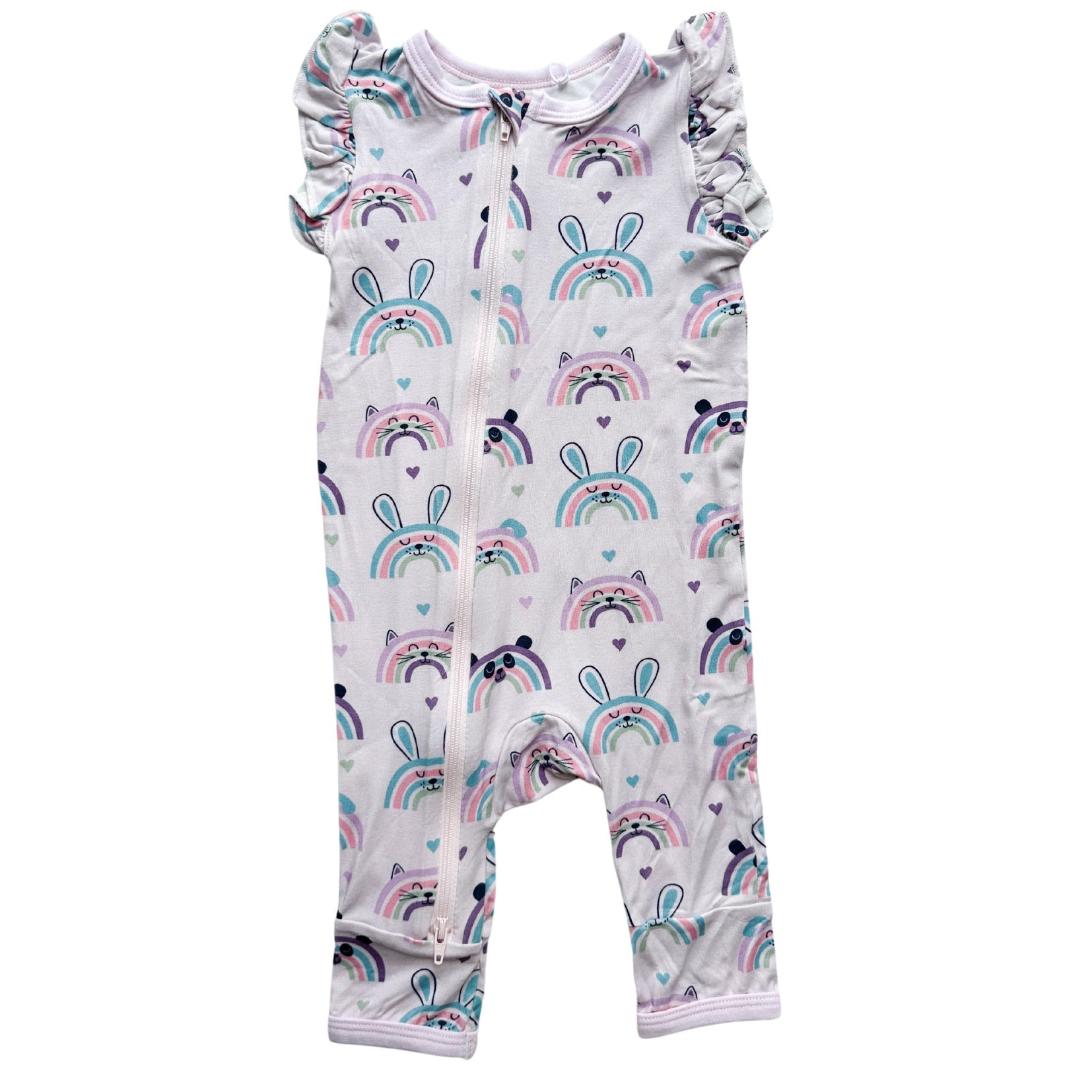 Our amazingly soft flutter sleeve coveralls are perfect for summer time lounging. Dual zippers make for easy breezy diaper changes.