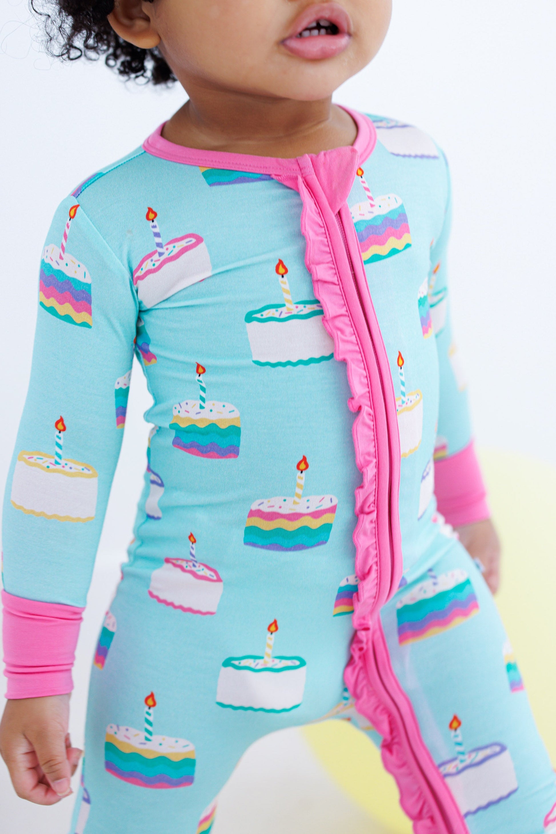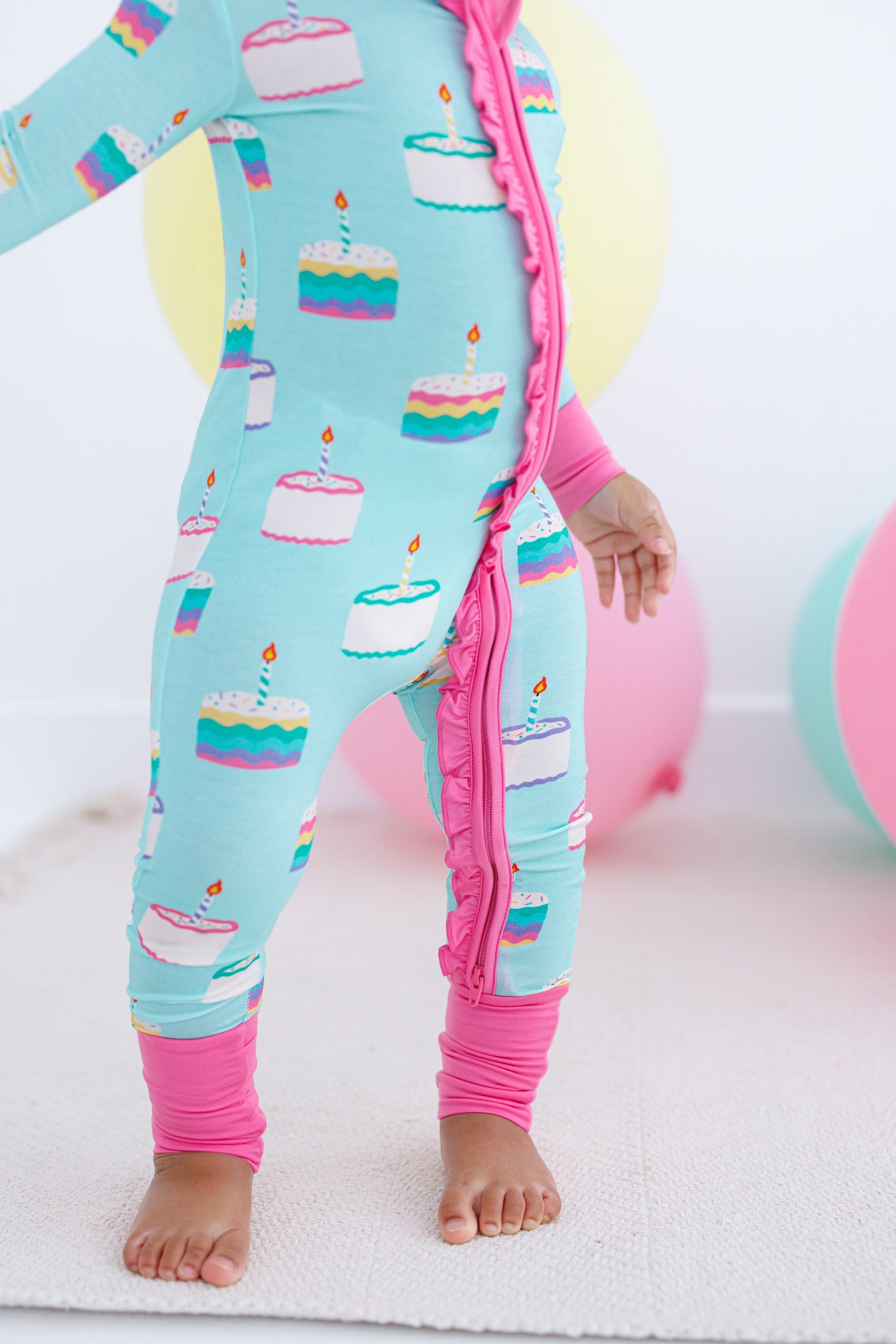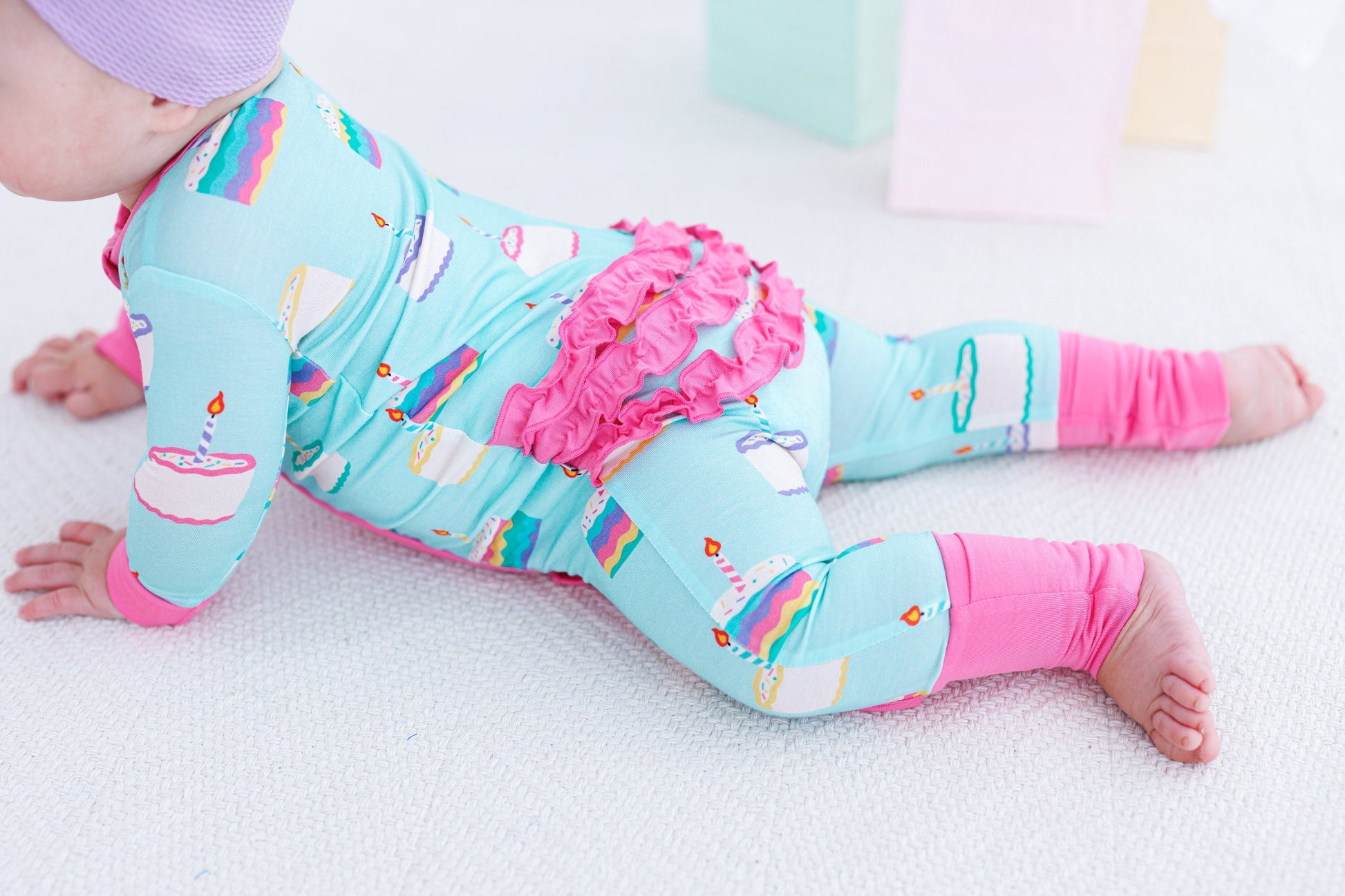 Romper or footie? Why not have both in one piece? You will love the option and ease of turning your romper into a footie! Our 2-way zipper feature makes diaper changes a breeze. Printed on irresistibly soft viscose from bamboo with just a touch of spandex. The perfect combination of cuteness and comfort!