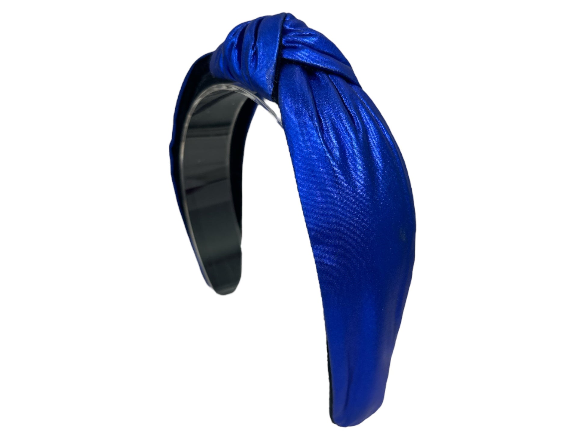 This headband is solid metallic is color. Super cute to pair with a pattern top or dress.