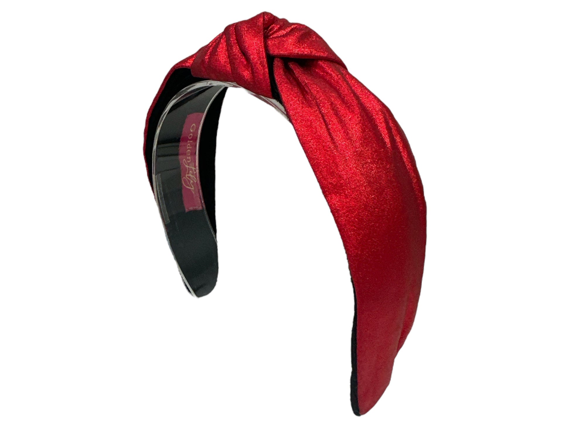 This headband is solid metallic is color. Super cute to pair with a pattern top or dress.